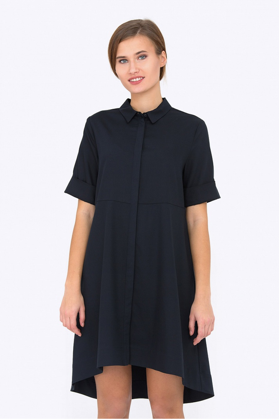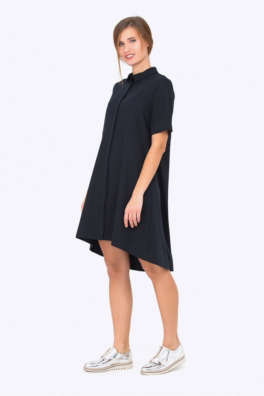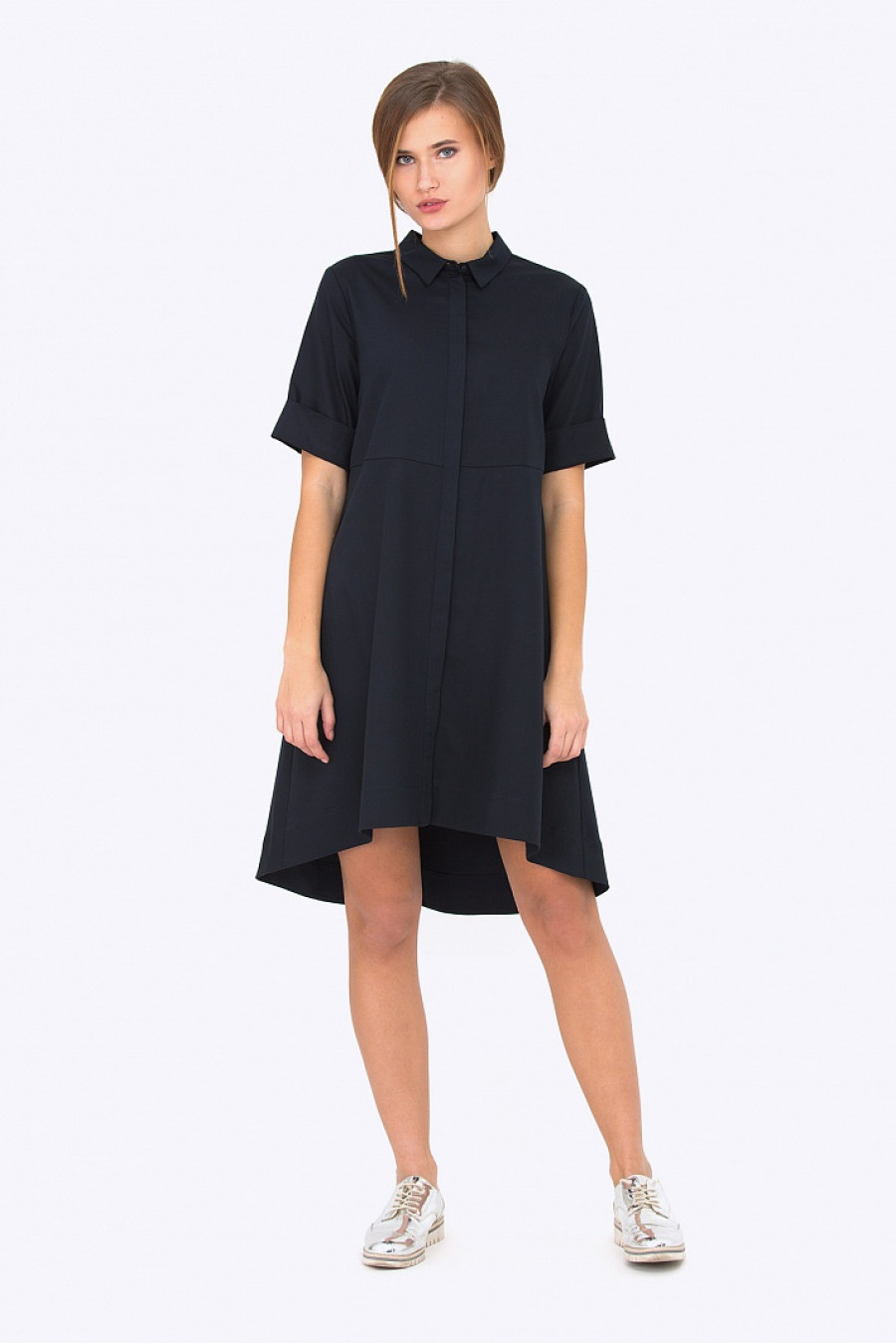 Платье-рубашка с асимметричным низом. Ткань в клетку на основе вискозы. В боковых швах карманы. Модель свободного кроя, не сковывает движения и создает стильный образ. Длина по спинке - 99 см.Длина спереди - 85 см.Длина градируется от размера к размеру.