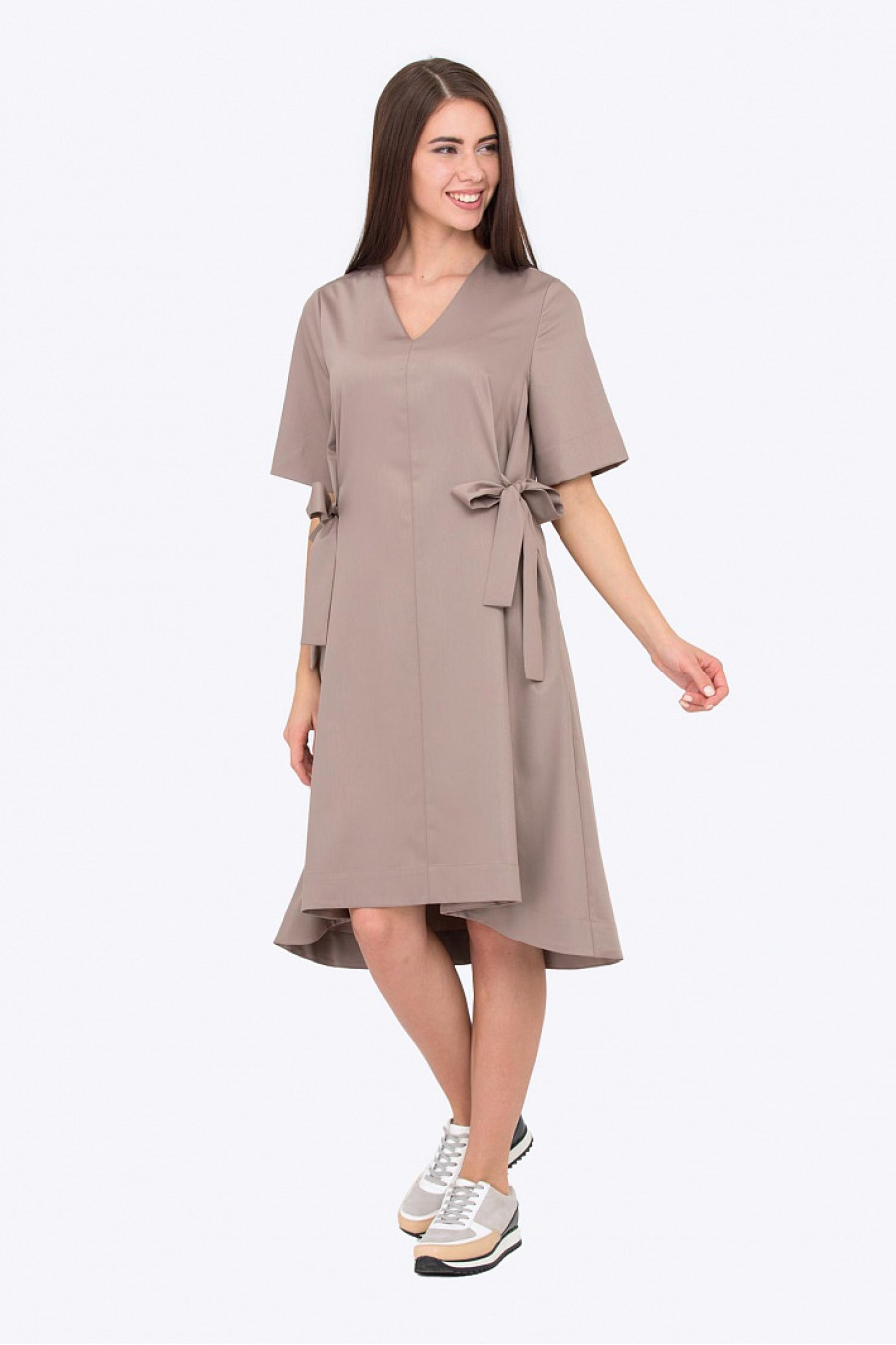 Платье свободного кроя с V-образным вырезом, по бокам собирается на бант. Модель хорошо сидит по фигуре и не сковывает движения. Стильное платье на каждый день.Без подклада.Длина градируется от размера к размеру.Рост фотомодели 172 см.