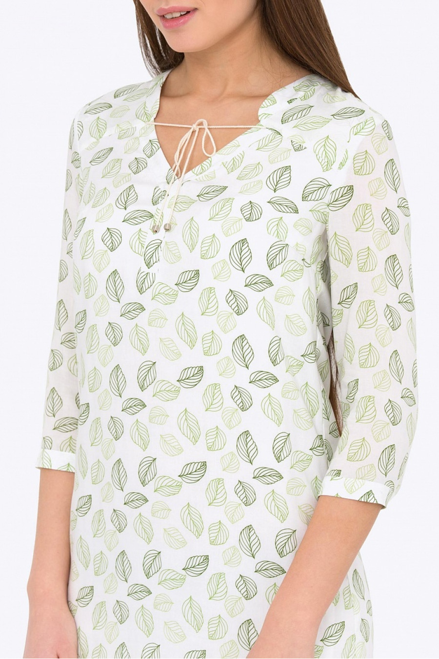 Платье прямого кроя с декоративной шнуровкой. Ткань приятная к телу, с растительным принтом. Рукава 3/4. Прекрасный выбор как для офиса, так и на каждый день. Отлично сочетается не только с туфлями на высоком каблуке, но и хорошо смотрится с обувью на плоском ходу. Рост фотомодели 175 см. С подкладом.