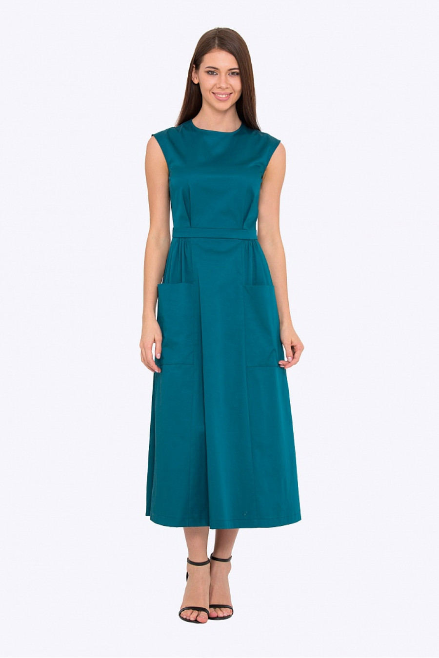 Приталенное платье-миди с накладными карманами. Застежка-молния на спинке. Без подкладки. Стильная модель, прекрасно подойдет на каждый день или для праздничного мероприятия. Рост фотомодели 172 см.