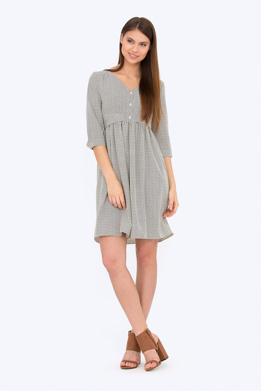 Платье с V-образным вырезом. Застежка-молния сбоку, рукава 3/4. Есть подкладка. Ткань легкая, приятная к телу. Женственное платье, позволит создать нежный образ. Рост модели 177см.