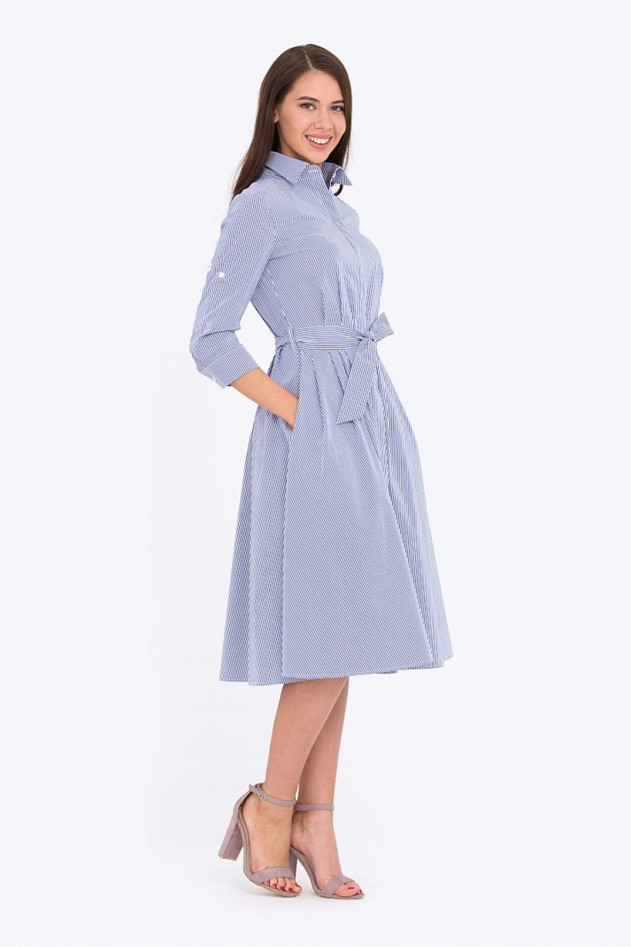 Платье-рубашка приталенного силуэта, с воротником - стойка. Застежка-планка на пуговицах. Рукава 3/4.Без подкладки. Модель хорошо сидит по фигуре, отличный выбор на каждый день. Длина градируется от размера к размеру. Рост фотомодели 172 см.