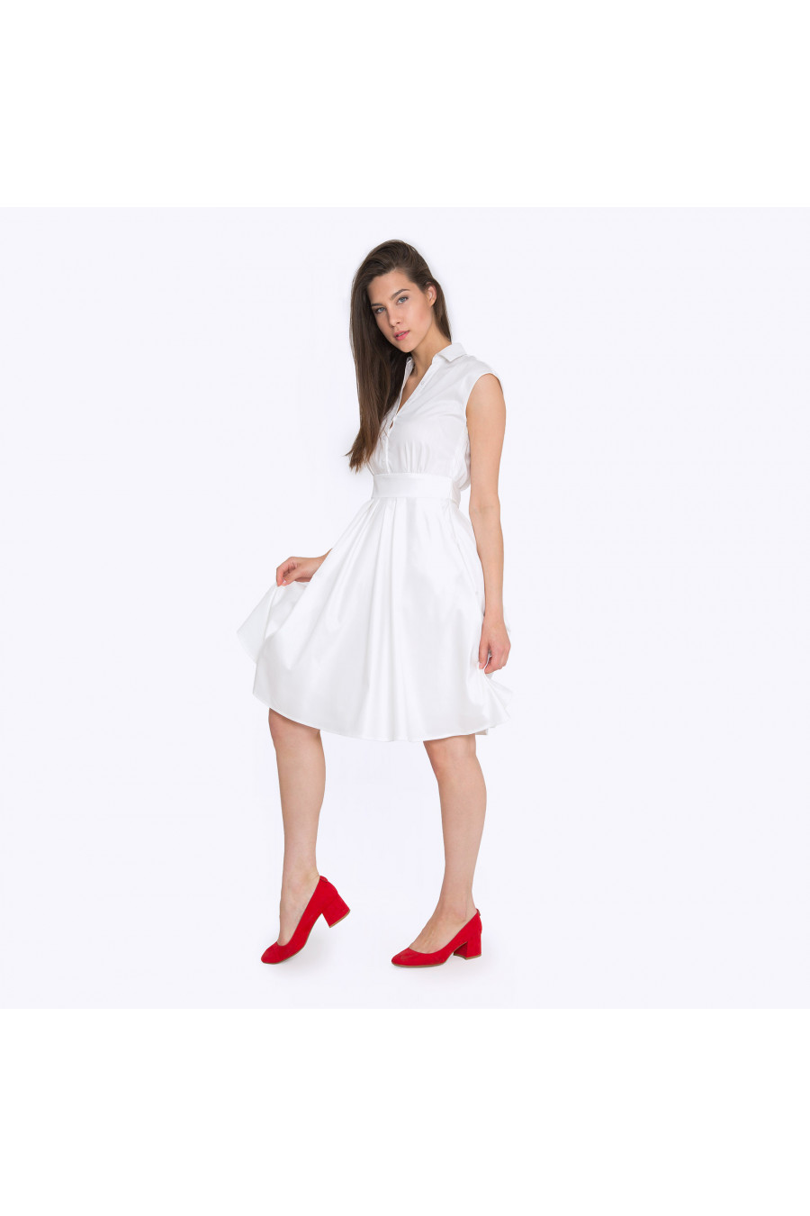 Платье приталенного силуэта, с бантом на поясе. Ткань на основе вискозы, приятная к телу. Модель с застежкой-планкой на пуговицах, по бокам функциональные карманы, на юбке есть подкладка. Легкое, женственное платье на каждый день и для летней вечеринке. Рост фотомодели 178 см.