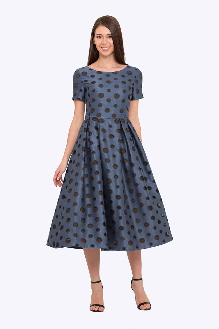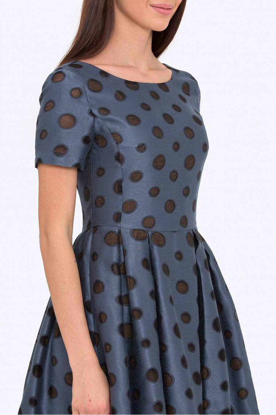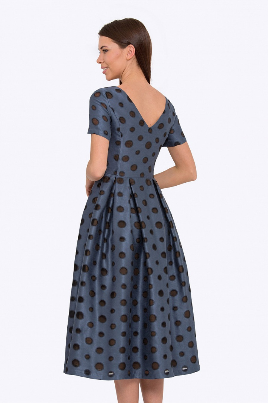 Платье маломерит на размер. Приталенное платье с пышной юбкой. Ткань перфорированная с атласной подкладкой. Платье отрезное по линии талии. На спинке V-образный вырез, застежка-молния сбоку. Платье станет отличным выбором для праздничного мероприятия. Поможет создать элегантный женственный образ. Рост фотомодели 172см.