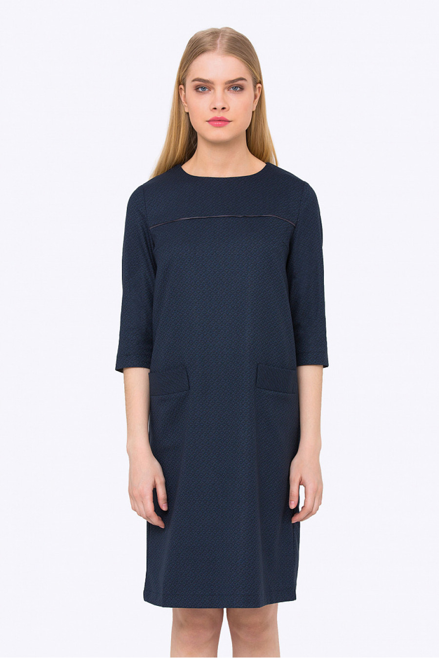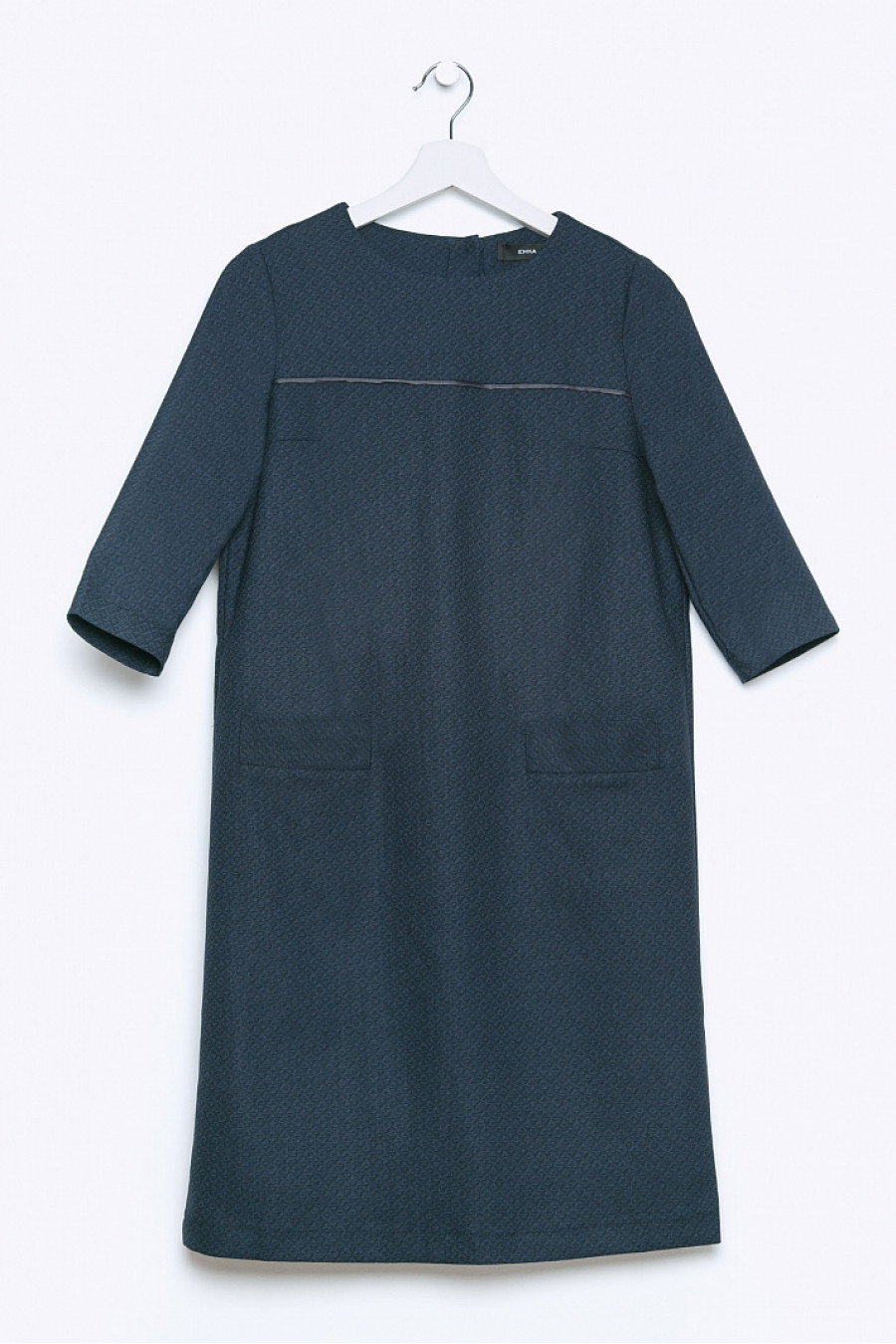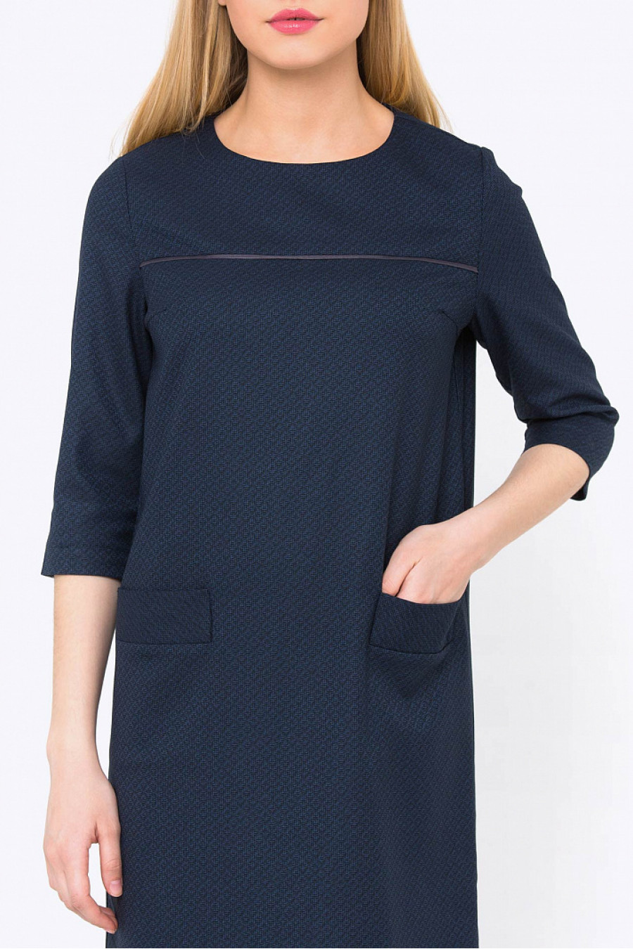 Платье прямого кроя,с кокеткой. На спинке застежка на пуговицы. Ткань средней плотности с мелкоузорчатым принтом. Спередидва функциональных кармана. Есть подкладка. Стильная и удобная в носке модель, подойдет для повседневной носке и для офиса. Рост фотомодели 170 см.