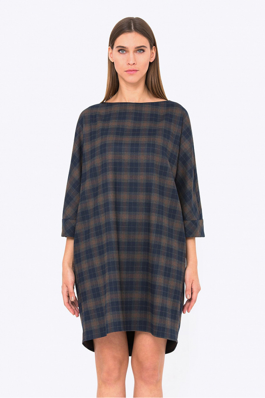 Платье широкого кроя с цельнокроеными рукавами. Ткань мягкая, приятная к телу с притом клетка. В боковых швах есть функциональные карманы. Модель без подкладки. Стильное платье на каждый день и для офиса. Рост фотомодели 178 см.