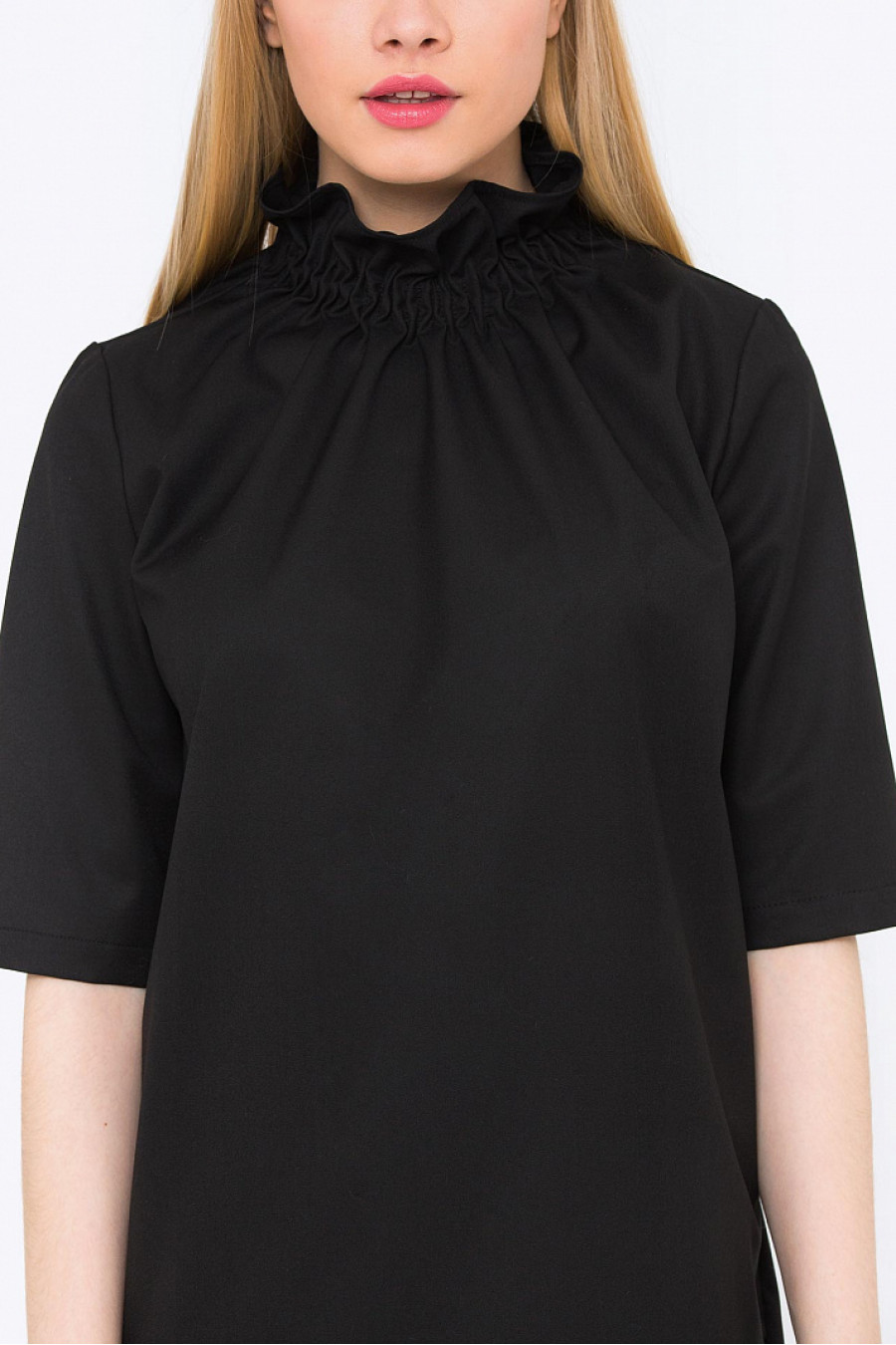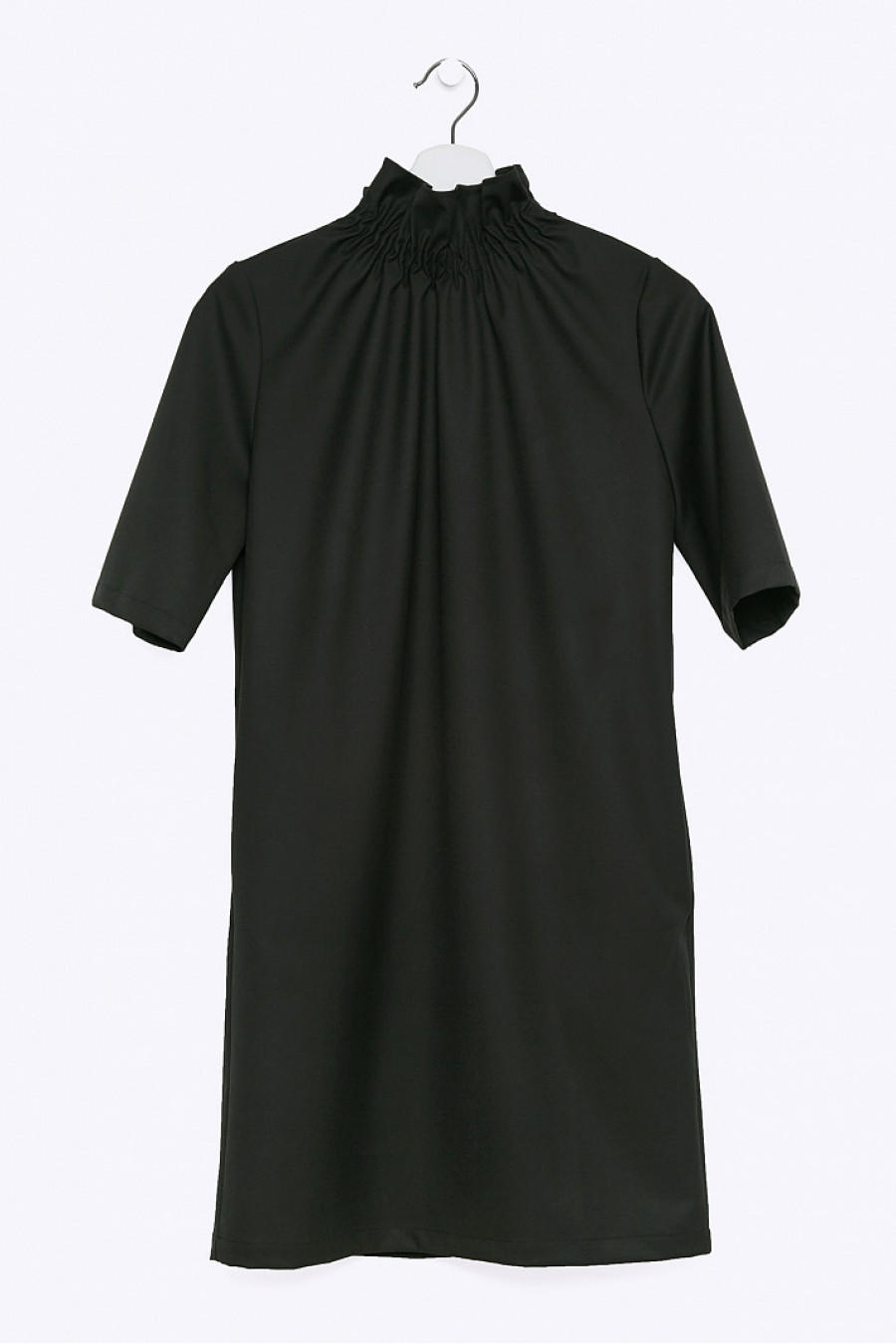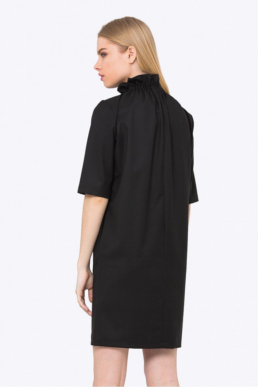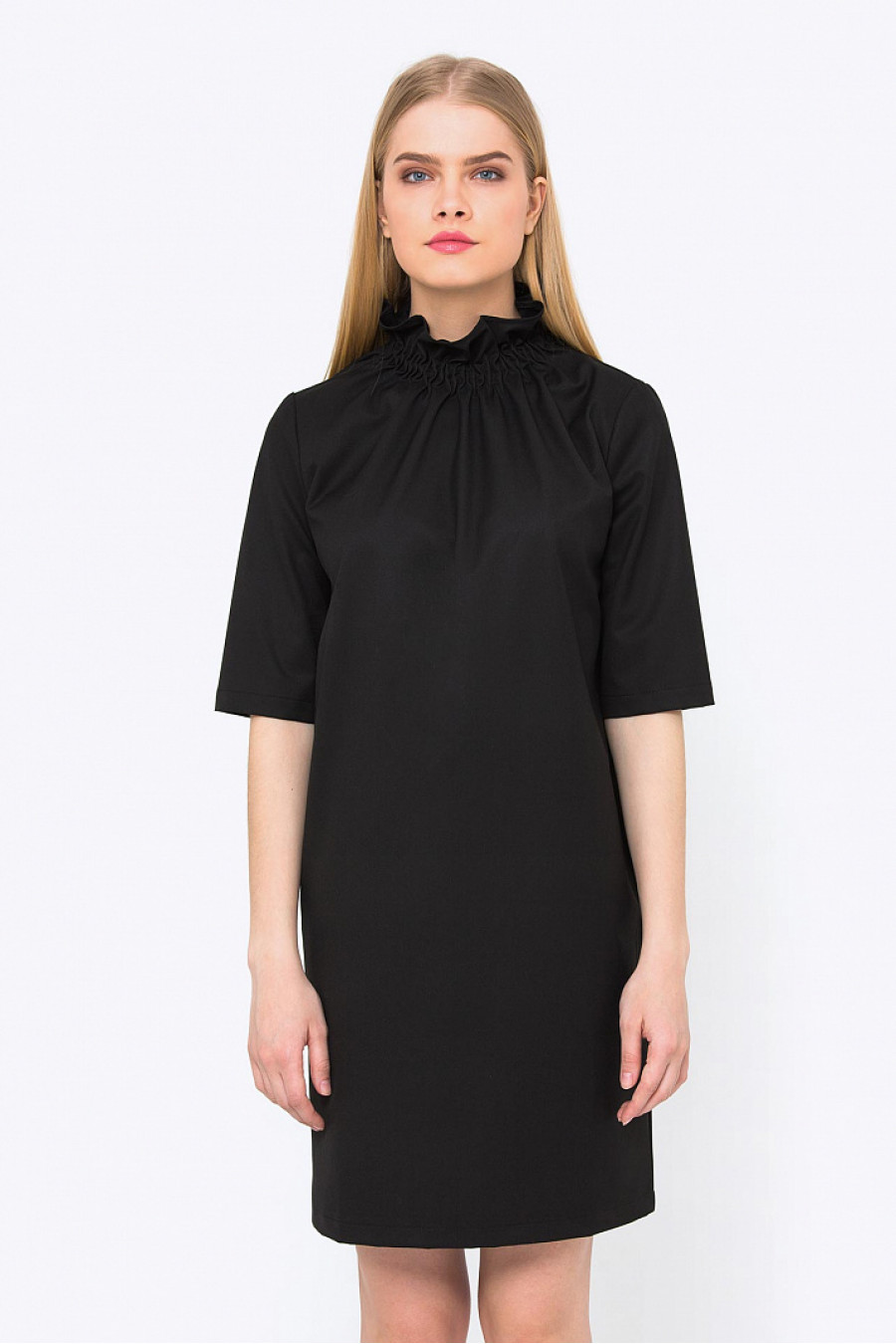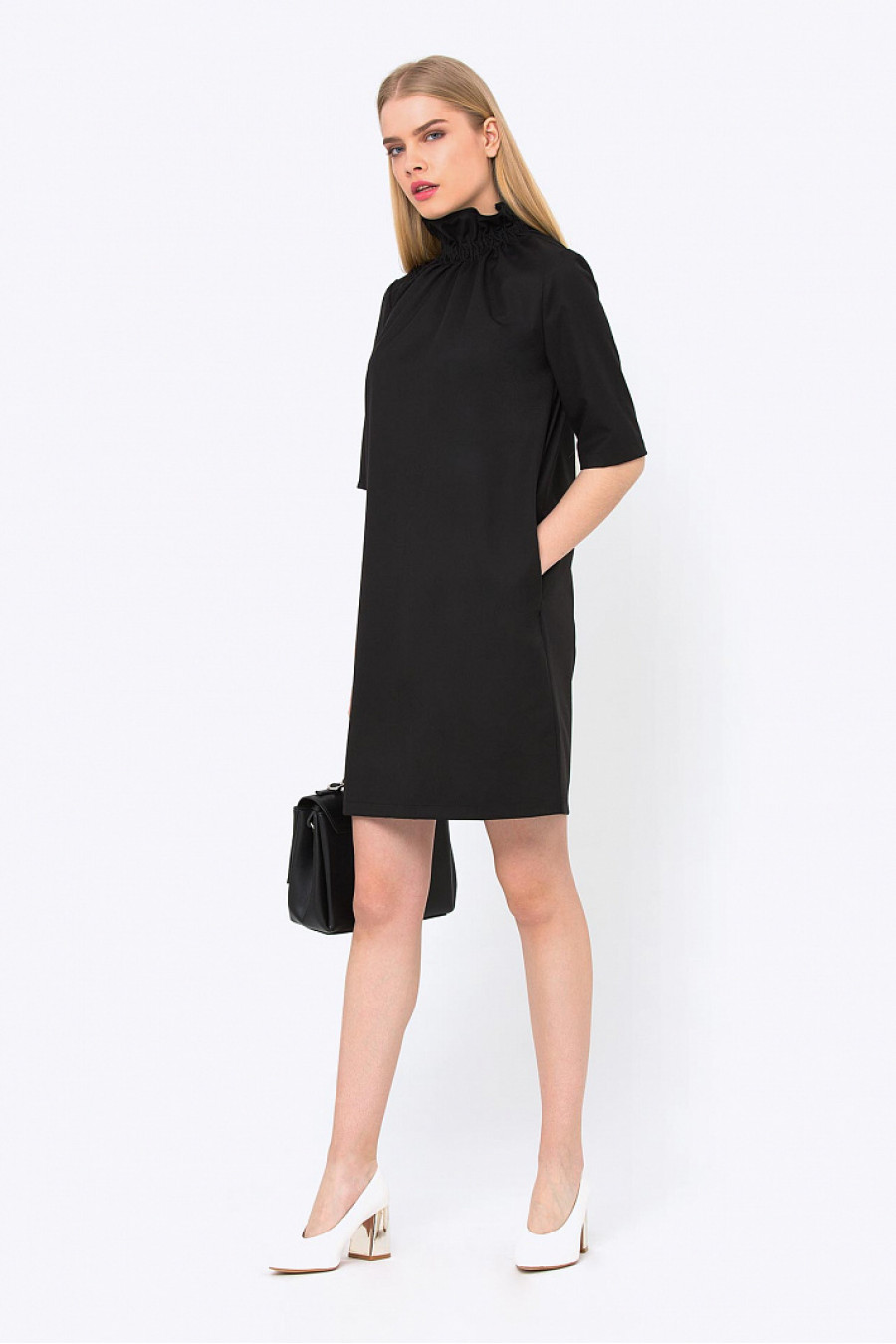 Платье прямого кроя со сборкой по горловине. Рукава короткие. Без подкладки. Застежка-молния на спинке. В боковых швах есть функциональные карманы. Стильноеплатье, хорошо сидит по фигуре, подойдет для повседневной носке или для праздничного мероприятия. Рост фотомодели 170 см.