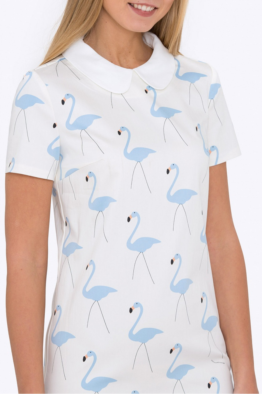 Платье прямого кроя. Ткань мягкая, очень приятная к телу с интересным принтом. Без подкладки. Благодаря закругленному белому воротнику платье смотрится очень стильно. Модель визуально стройнит и хорошо сидит по фигуре. Длина градируется от размера к размеру. Рост фотомодели 173 см.