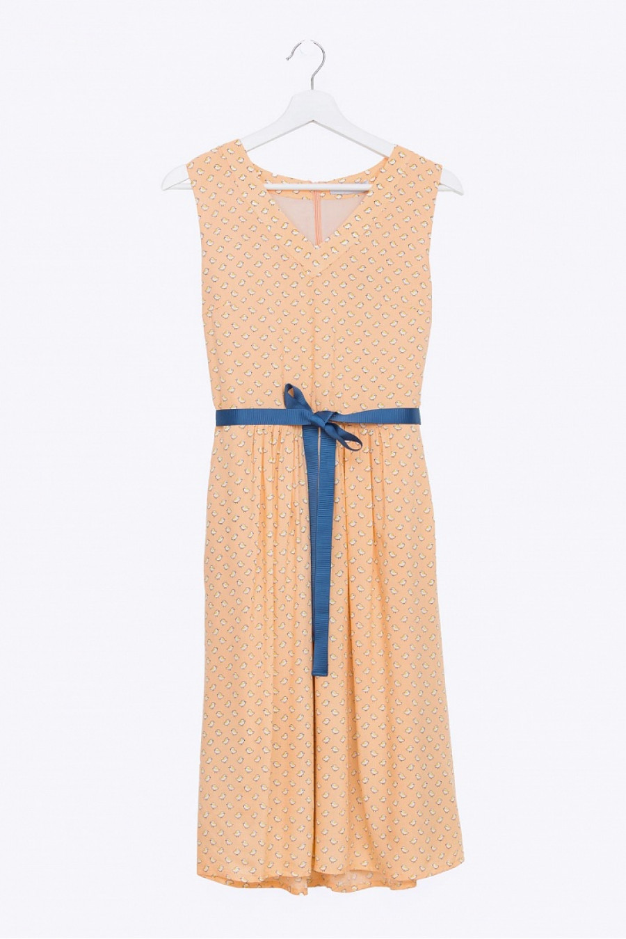 Расклешенное платье с V-образным вырезом. Застежка-молния на спинке, на талии пояс.Есть подкладка. Ткань легкая, приятная к телу. Женственное платье, позволит создать нежный образ. Рост модели 172см.