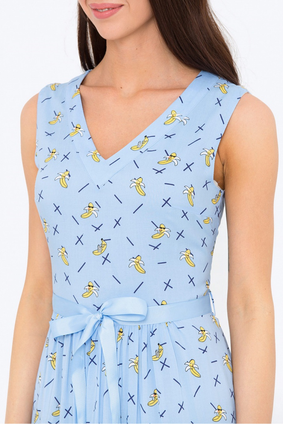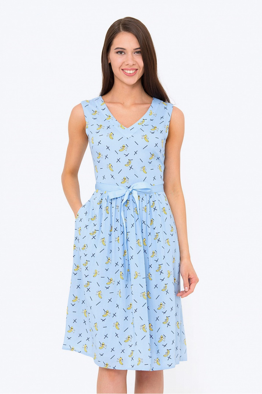 Расклешенное платье с V-образным вырезом. Застежка-молния на спинке, на талии пояс.Есть подкладка. Ткань легкая, приятная к телу. Женственное платье, позволит создать нежный образ. Рост модели 172см.