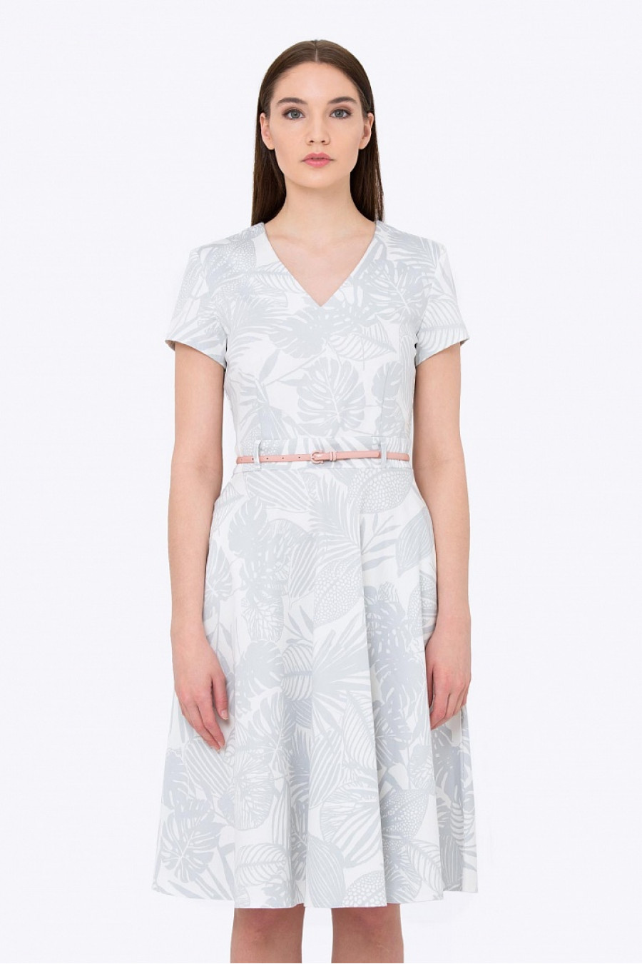 Приталенное платье с расклешеннойюбкой. На талии втачной пояс,V-образный вырез горловины, застежка-молния на спинке. Платье станет отличным выбором для праздничного мероприятия. Поможет создать элегантный женственный образ. Рост фотомодели 175см.