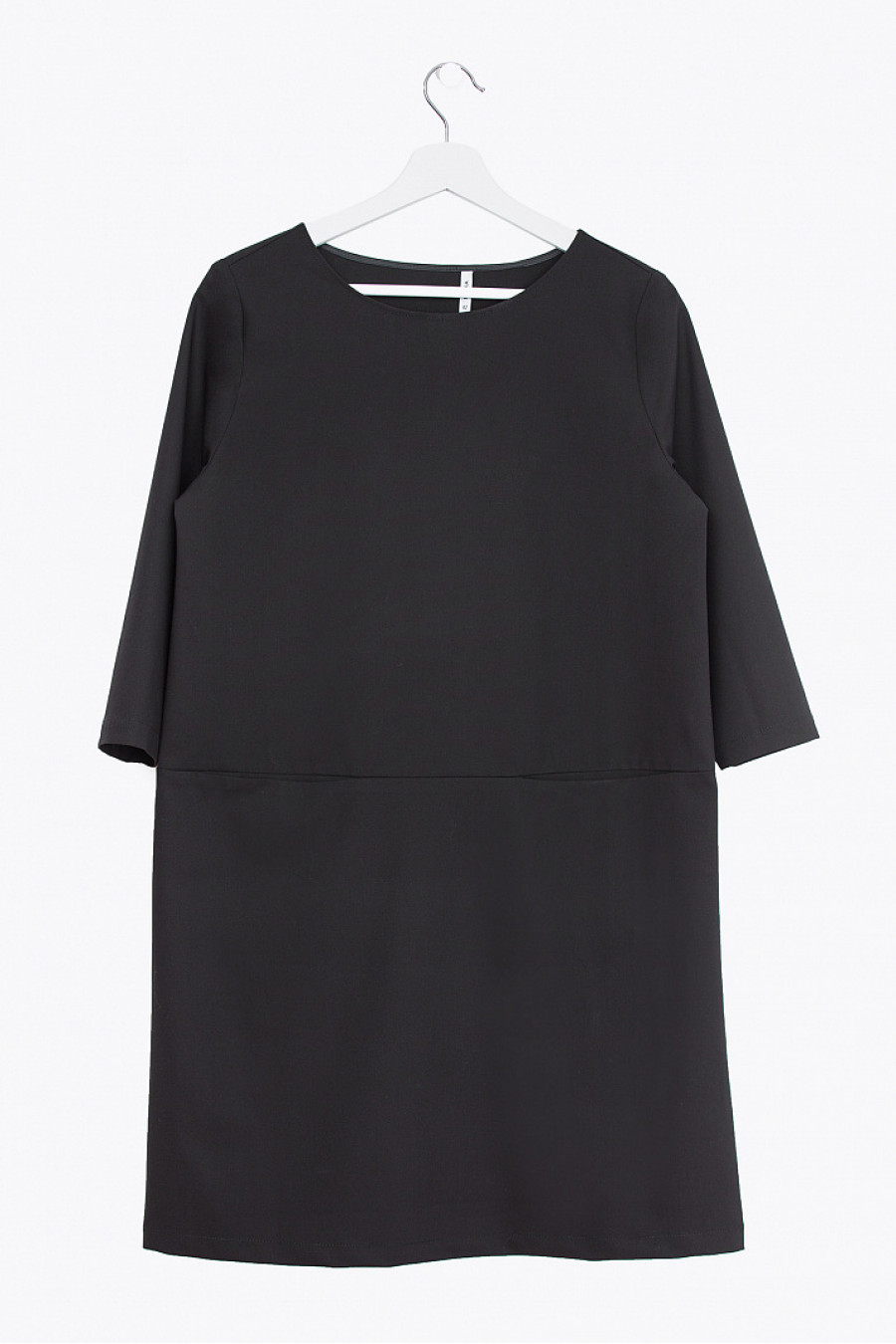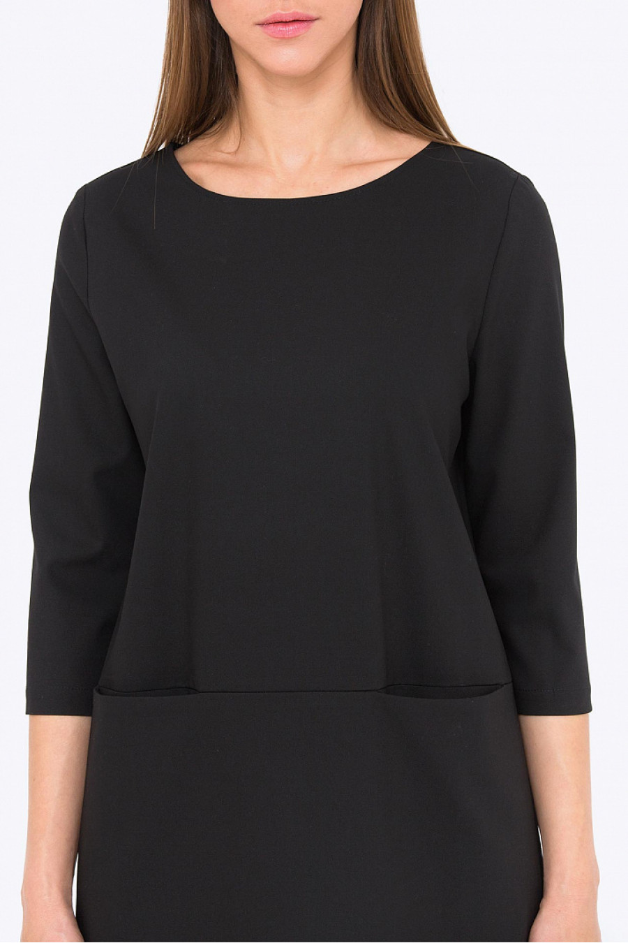 Платье прямого кроя. Спереди карман кенгуру. Без подкладки. Ткань средней плотности, черного цвета.Стильное и очень комфортное в носке платье станет незаменимым в вашем гардеробе. Рост фотомодели 178см.