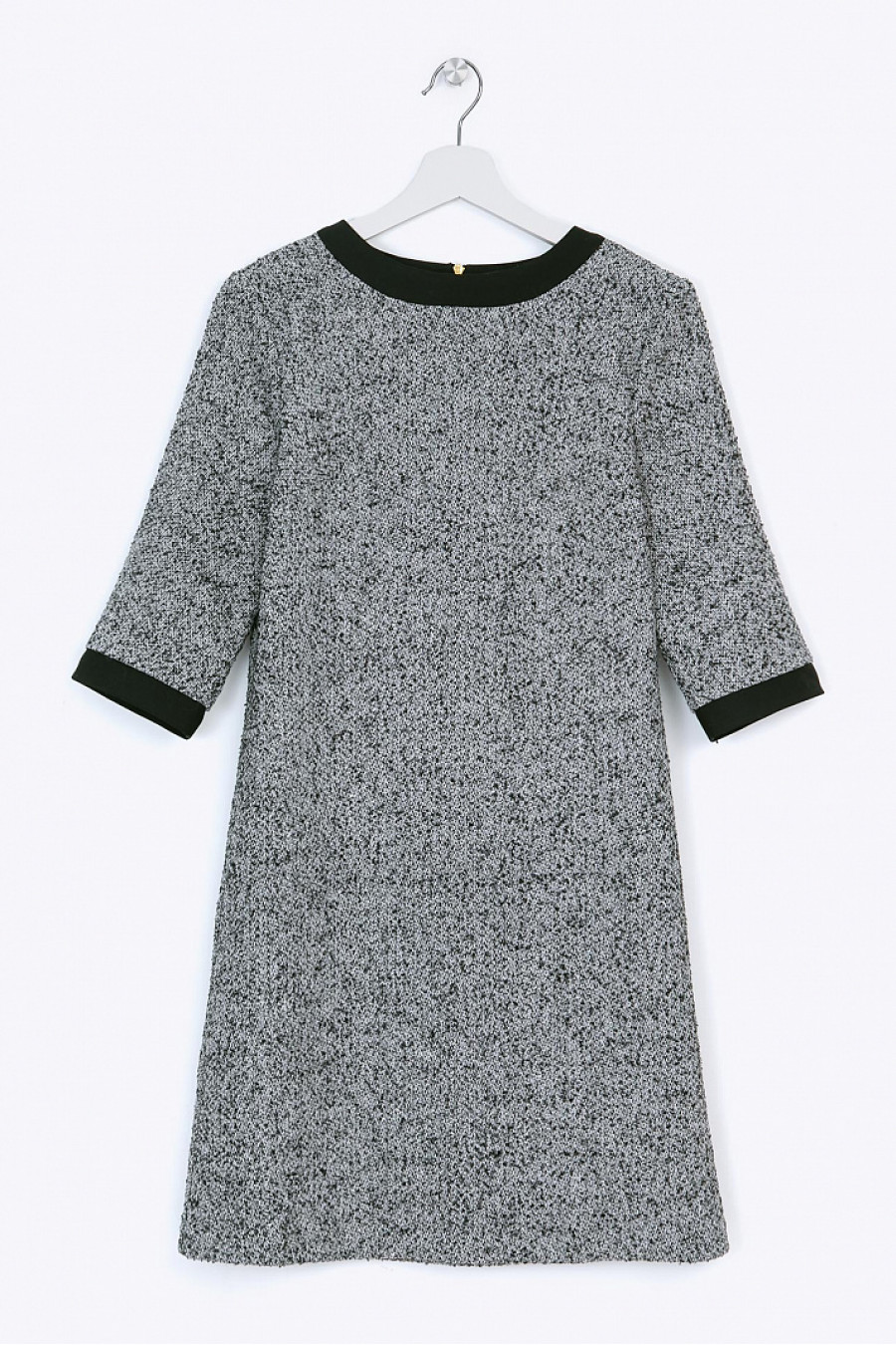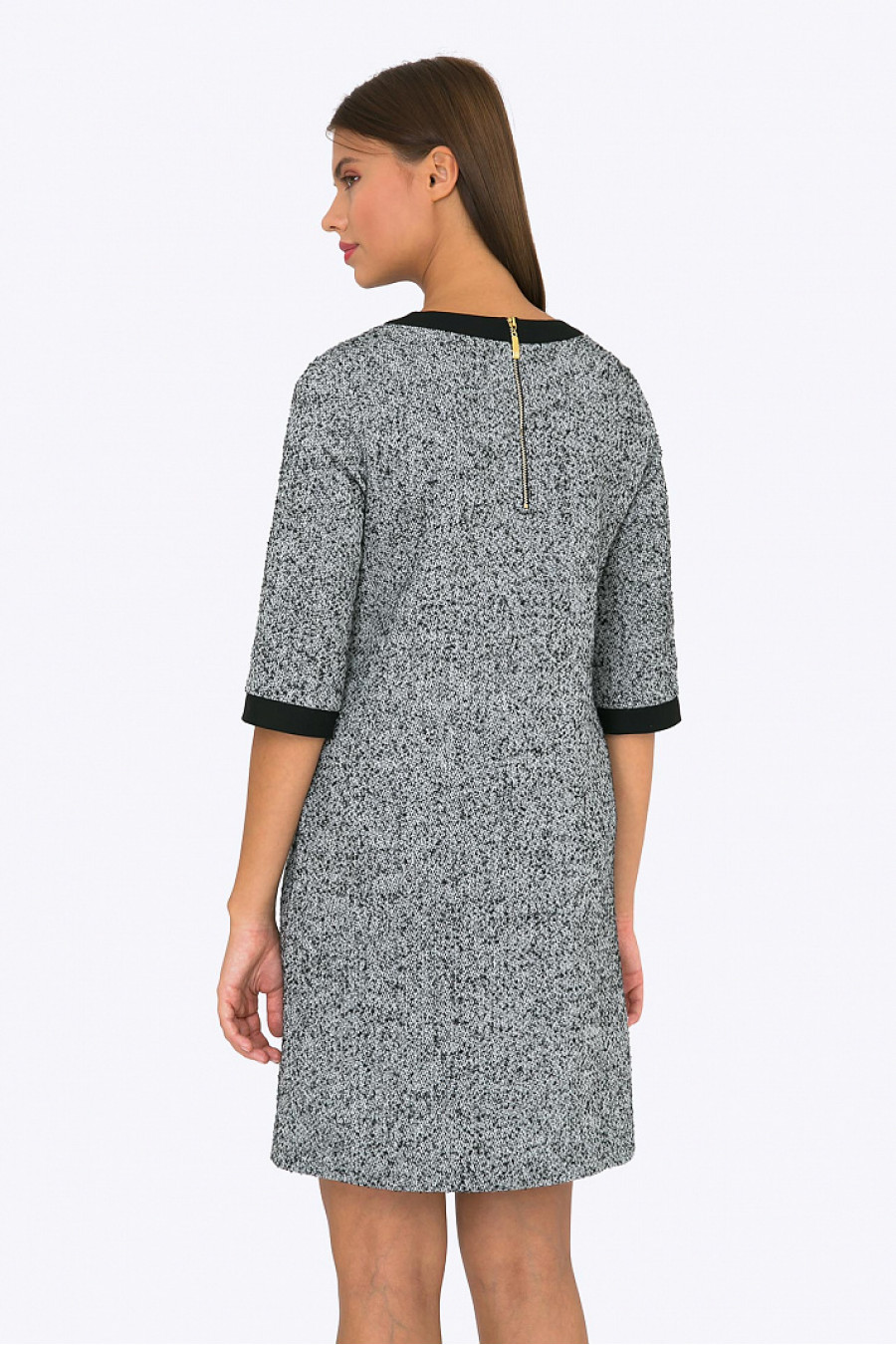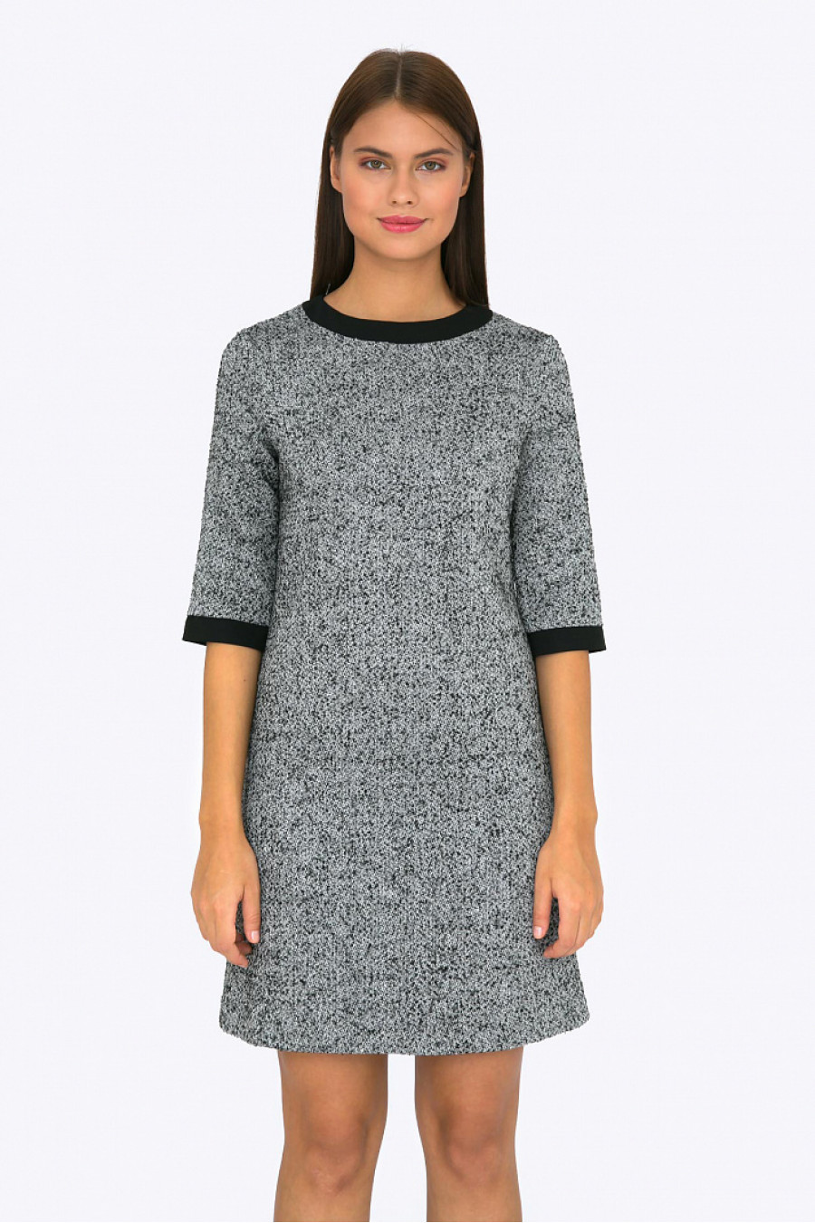 Шерстяное платье серого цвета. Ткань структурная. Платье без подкладки, застежка-молния на спине. Рукаваи горловина оформлены черной отделочной тканью. Платье хорошо сидит по фигуре, отличная модель на каждый день. Идеально подойдет для осенне-зимнего сезона.