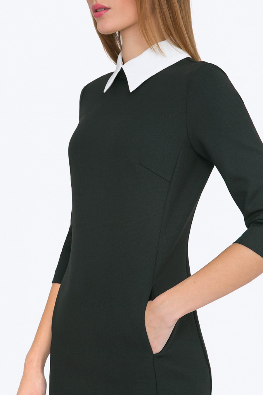 Привлекательный дизайн этого офисного платья в стиле восьмиклассница не оставит равнодушными молодых, неординарных женщин. Мини-подол, скромный черный цвет ткани, строгий белый воротничок, облегающая посадка - создадут образ педантичной, но женственной сотрудницы. Лаконичный фасон этой модели не нуждается в дорогих аксессуарах, - достаточно хорошей сумочки и туфлей яркого цвета. Платье будет отлично смотреться на шатенках и золотоволосых. Мягкая смесовая ткань с содержанием вискозы приятна в носке и проста в уходе. Рост фотомодели 175 см.