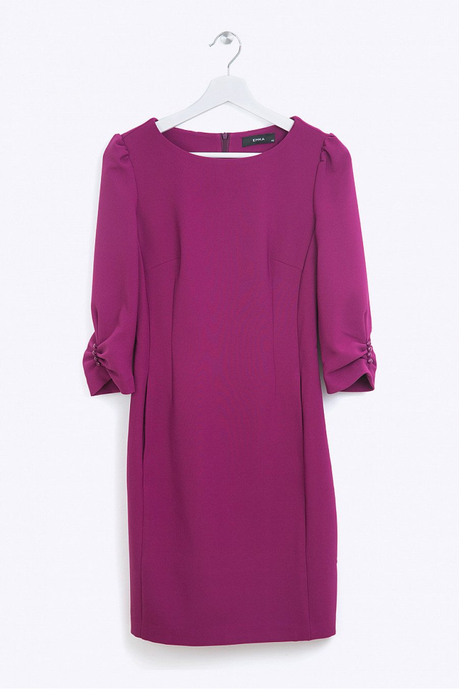 Изящное платье-футляр.Ткань плотная, эластичная, приятная на ощупь. Рукава 3/4, оформлены складками с декоративными пуговицами. Без подкладки. Благодаря вертикальным рельефамплатье стройнит, подчеркивает привлекательные изгибы женской фигуры. Отличный вариант для офиса или вечеринки. Рост фотомодели 172 см.
