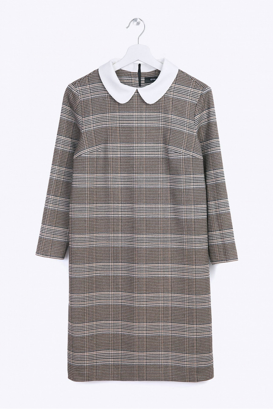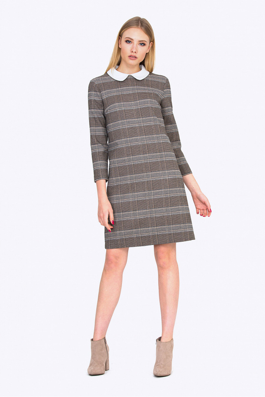 Теплое платье в клетку прямого кроя. Ткань мягкая, бархатистая, очень приятная к телу. С подкладкой. Благодаря закругленному белому воротнику платье смотрится очень стильно. Модель визуально стройнит и хорошо сидит по фигуре. Длина градируется от размера к размеру: 42 размер - 90 см, 54 размер - 94 см. Рост фотомодели 175 см.