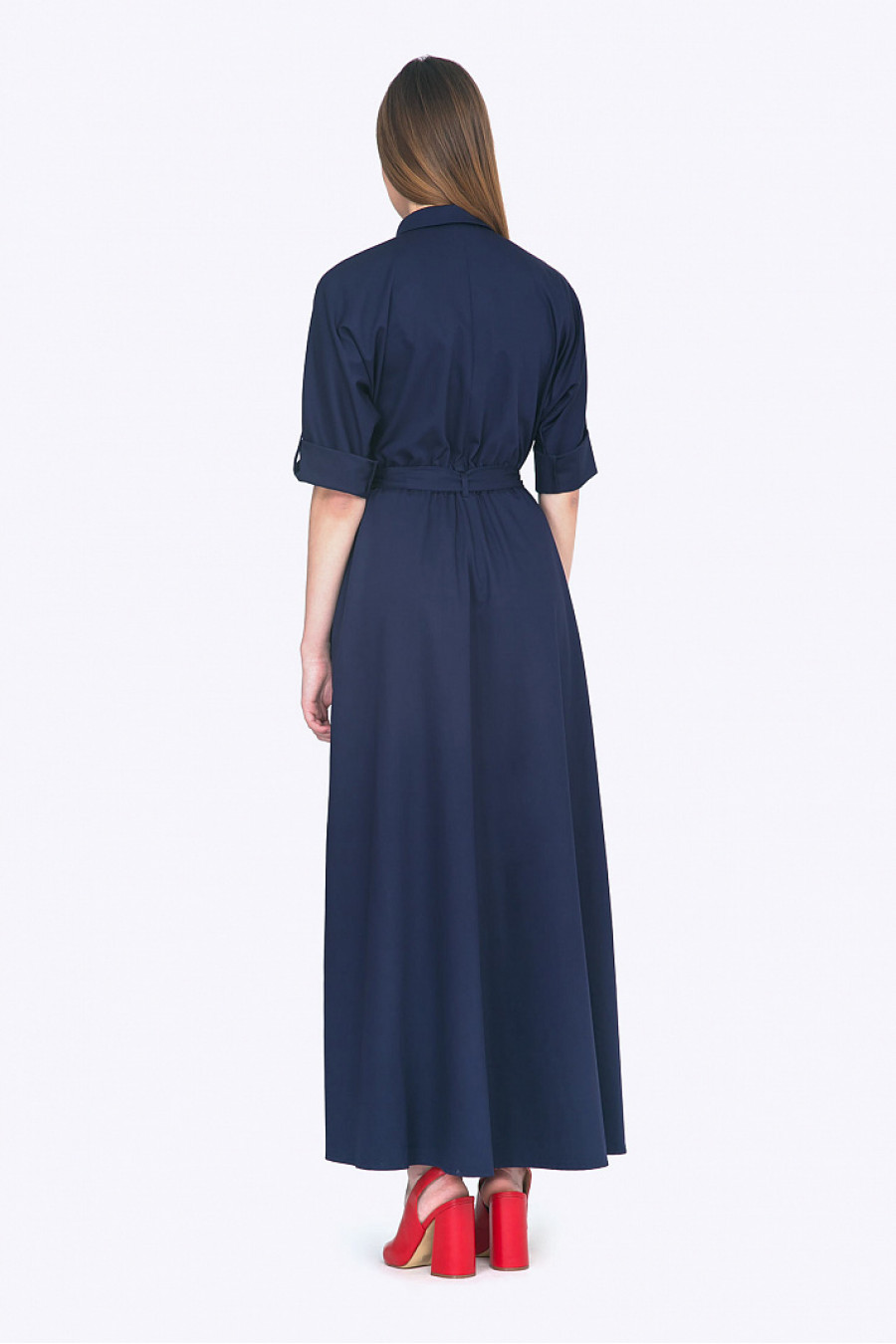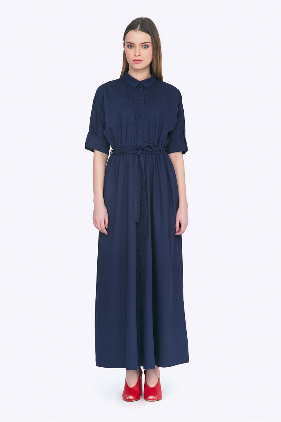 Сафари-стиль по прежнему - на гребне волны в этом сезоне. Трендовое платье-макси благородного оттенка ночное море - отличный выбор для создания актуального, энергичного look-а. Традиционные для фасона накладные карманы, рукава с подворотом, рубашечный воротничок - подчеркнут энергичность образа, а длинный расклешенный подол, собранный эстетичными складками на поясе - создаст женственный мотив. Платье будет идеально смотреться на шатенках и золотоволосых. Плотная ткань стильного плетения деним комфортна в носке и проста в уходе. Рост фотомодели 176 см.