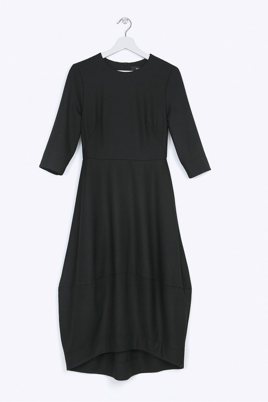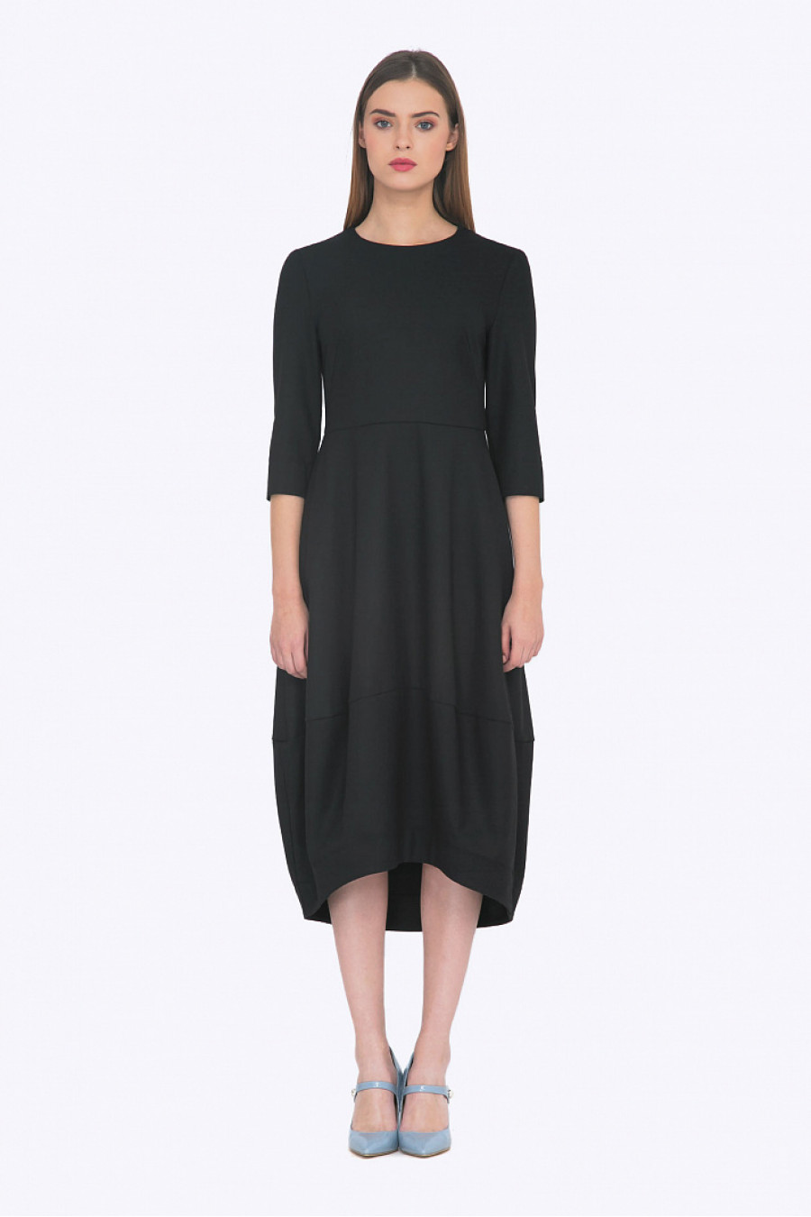Ультрамодное черное платье креативного дизайна в стиле кубизм с ромбовидным подолом и минималистичным верхом создано выражения вашей индивидуальности и актуального вкуса. Станет идеальным повседневным выбором для представительниц компаний в сфере новых технологий, фешн-индустрии, фото-искусства и т.д. Надежная смесовая ткань с содержанием вискозы хорошо держит форму, удобные скрытые карманы в швах подола придают непринужденность look -у и позволят обойтись без сумочки, если это необходимо. С блестящим широким ремнем ( например из бусин или цепочек), дорогими украшениями и клатчем модель можно использовать для вечернего выхода.Рост фотомодели 176см.