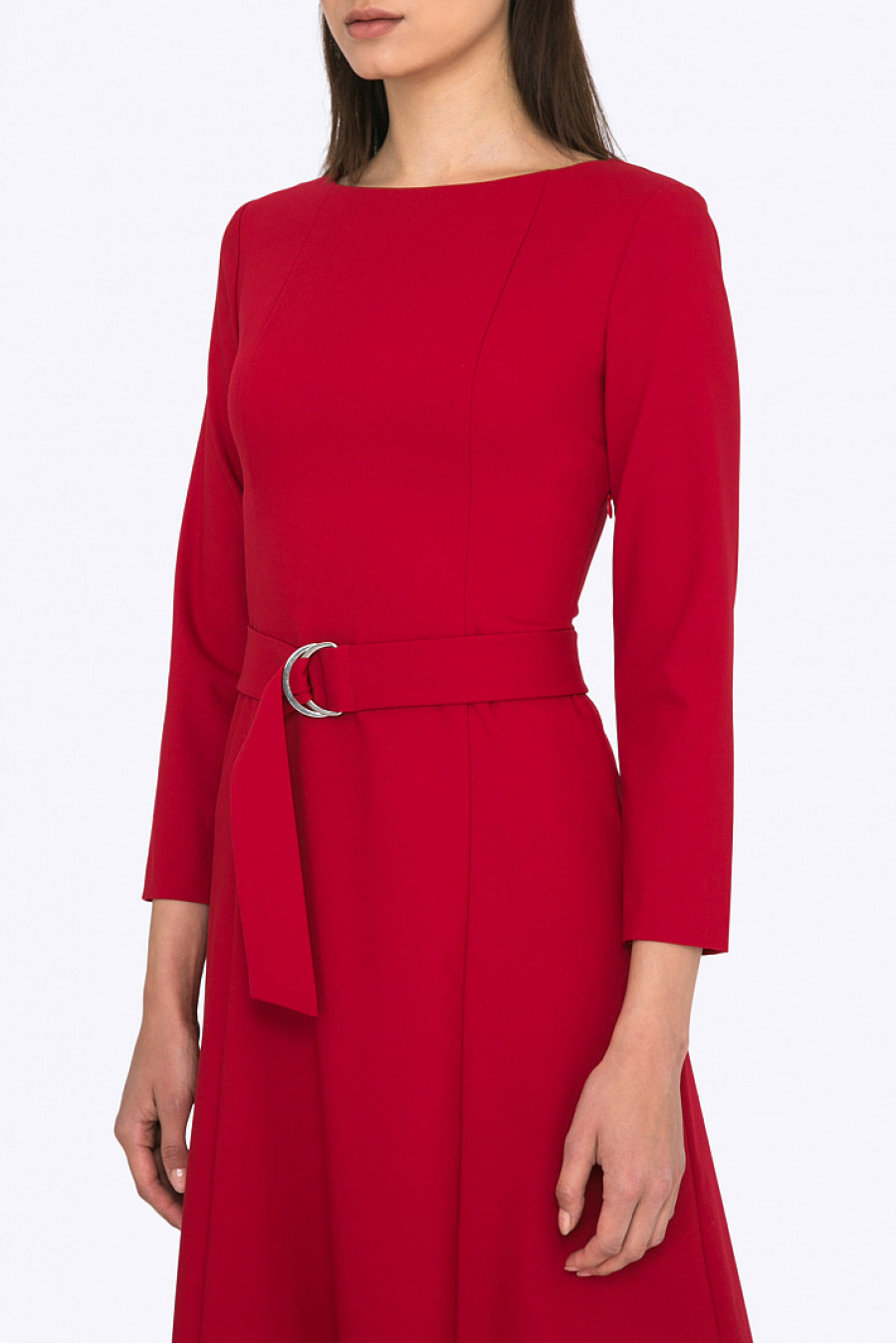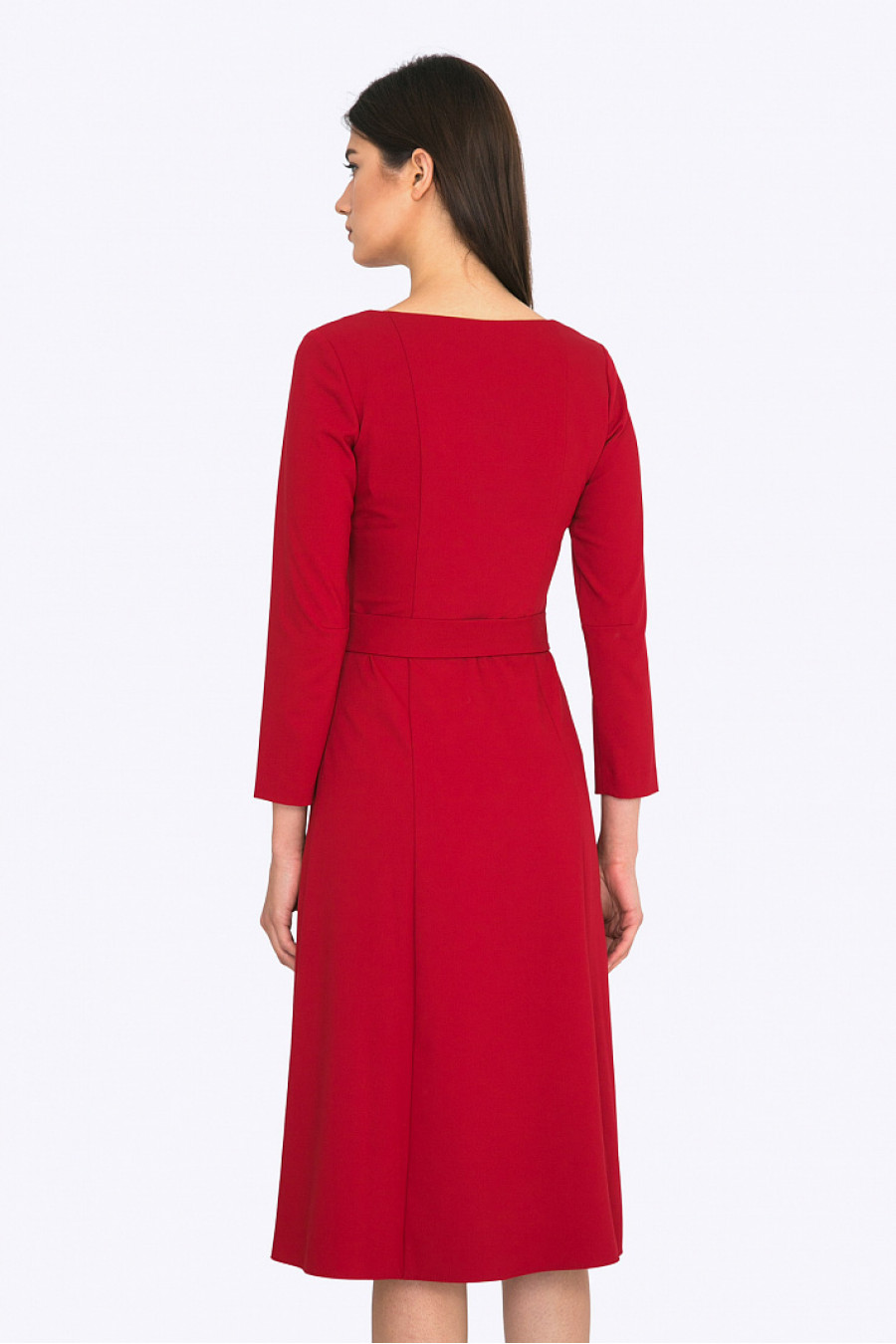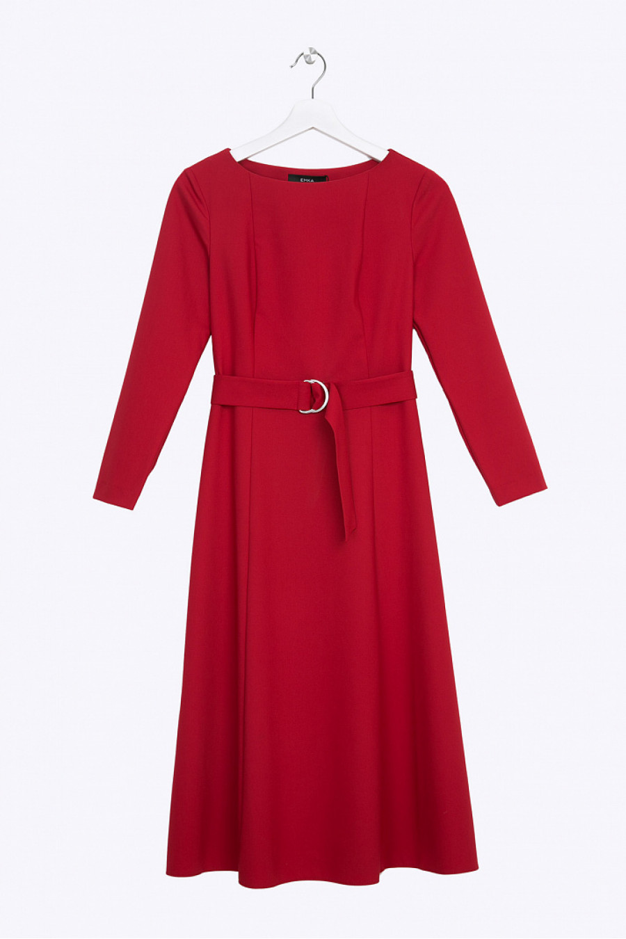 Платье-миди приталенного силуэта, расклешенное к низу. Ткань плотная. Без подкладки. Застежка-молния сбоку, в комплект входит тканевый пояс с пряжкой. Женственная элегантная модель, для офиса и на выход. Длина градируется от размера к размеру. Рост фотомодели 178см.