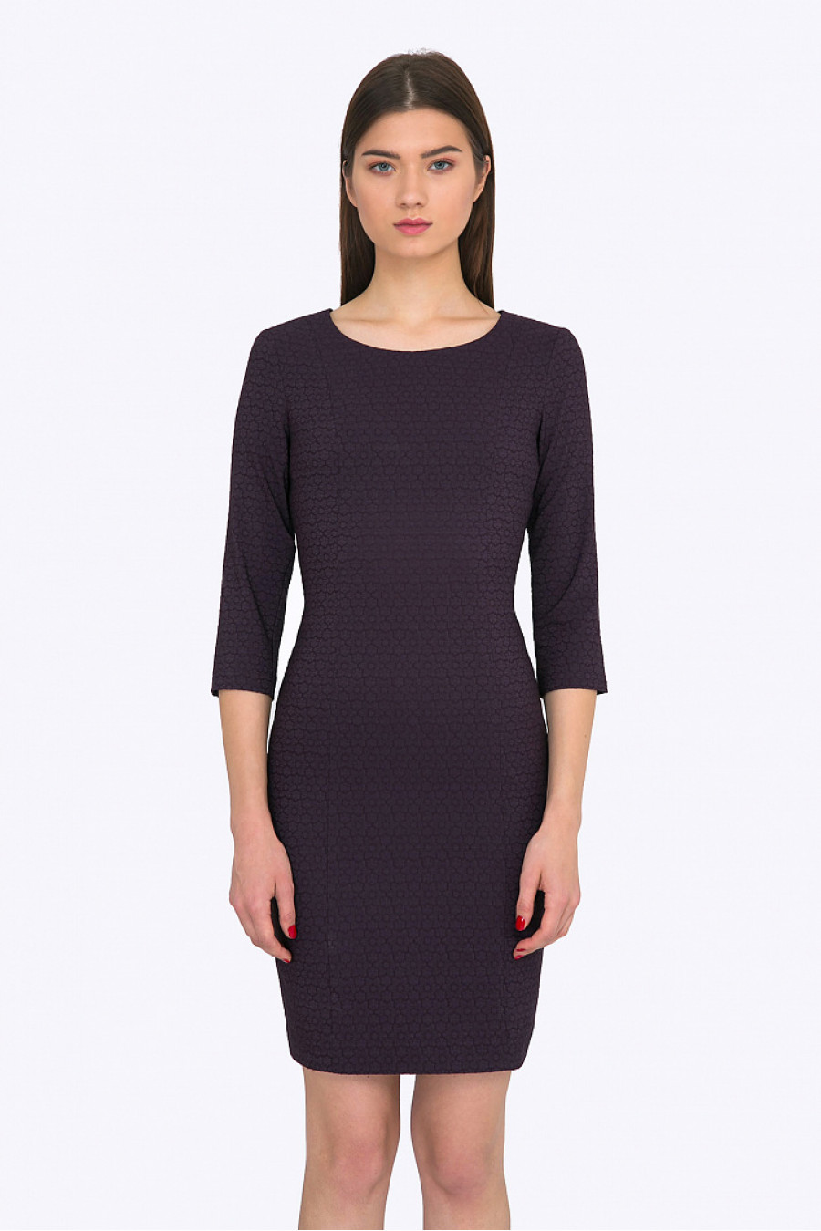 Платье-футляр.Ткань эластичная, структурная. Рукава 3/4. С подкладкой. Благодаря вертикальным рельефам платье стройнит, подчеркивает привлекательные изгибы женской фигуры. Отличный вариант для офиса или вечеринки. Рост фотомодели 174см.