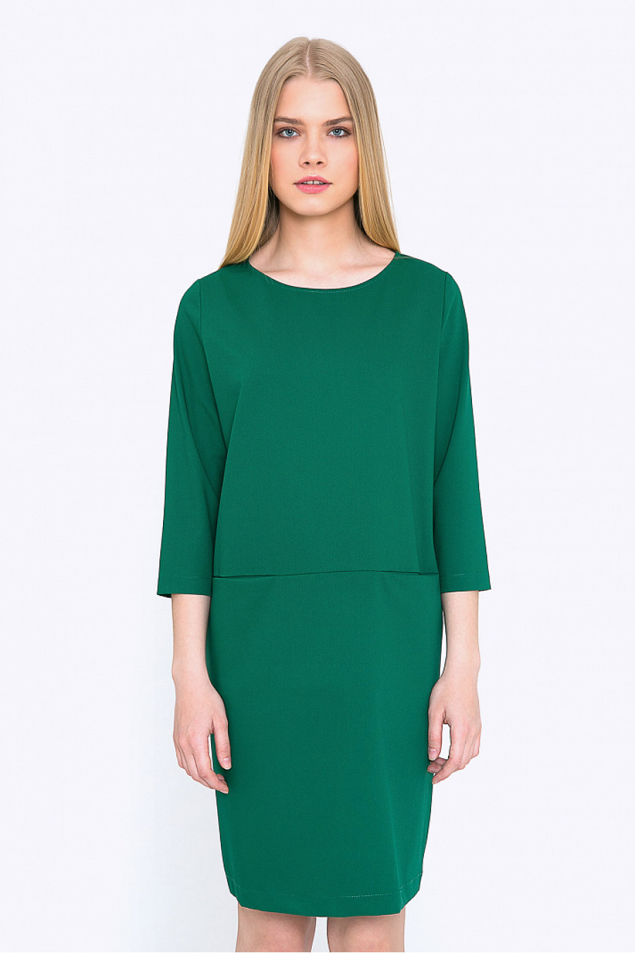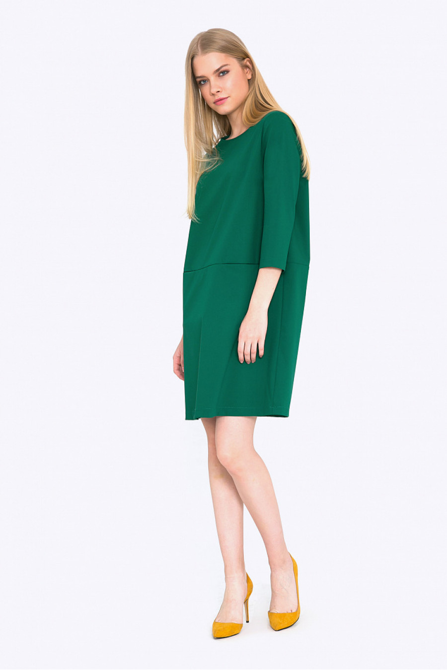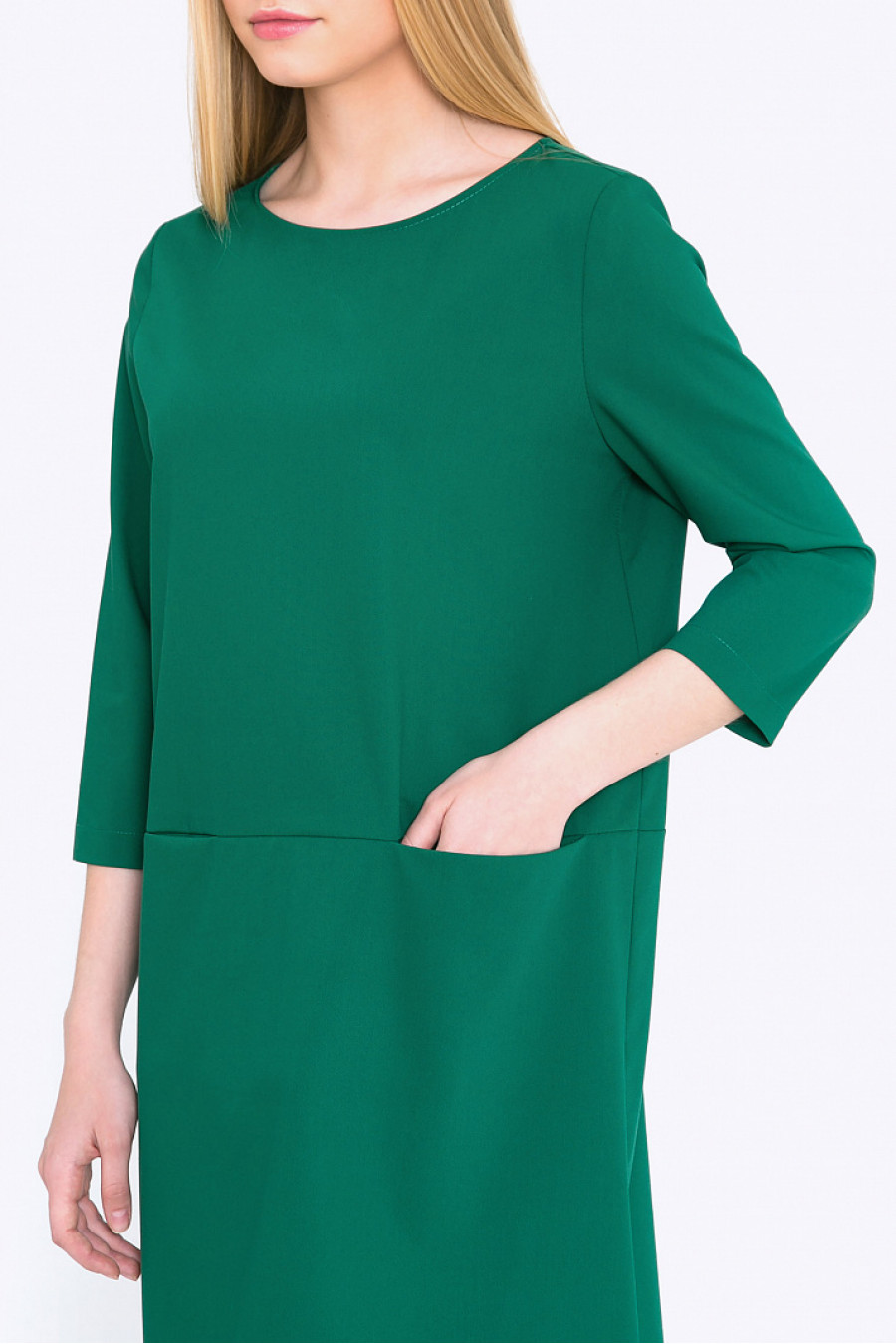 Платье прямого силуэта с рукавами 3/4. Модель без подкладки, спереди карман кенгуру. Стильное и очень комфортное в носке платье станет незаменимым в вашем гардеробе. Рост фотомодели 170см.