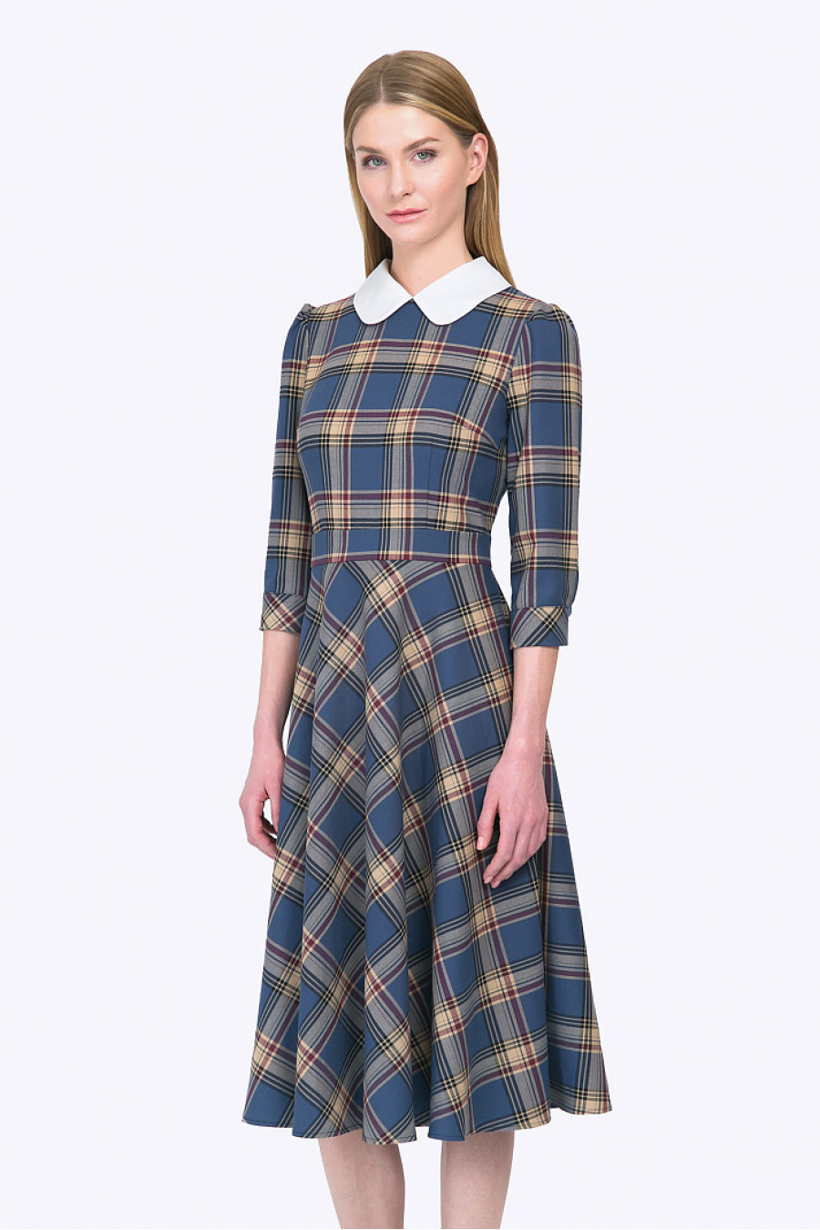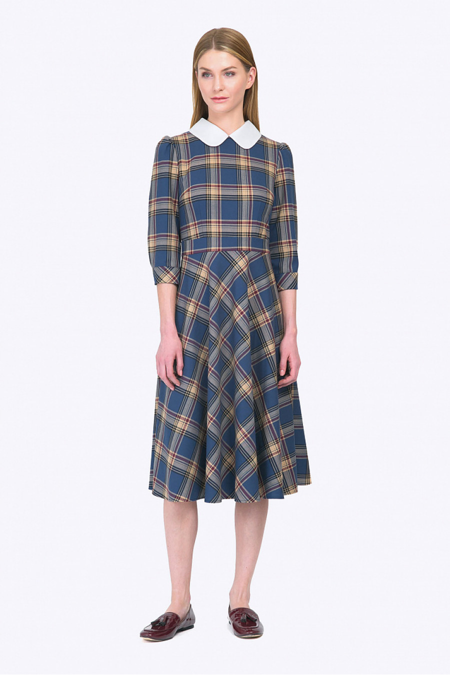 Стильное и женственное ретро-платье с освежающим белым воротничком, безупречным силуэтом и рукавом-фонариком, - отличный способ быть в тренде, сохранив индивидуальный стиль. Лаконичные бордовые лодочки или мокасины выразительно дополнят образ. Модель без подкладки. Рост фотомодели 175 см.