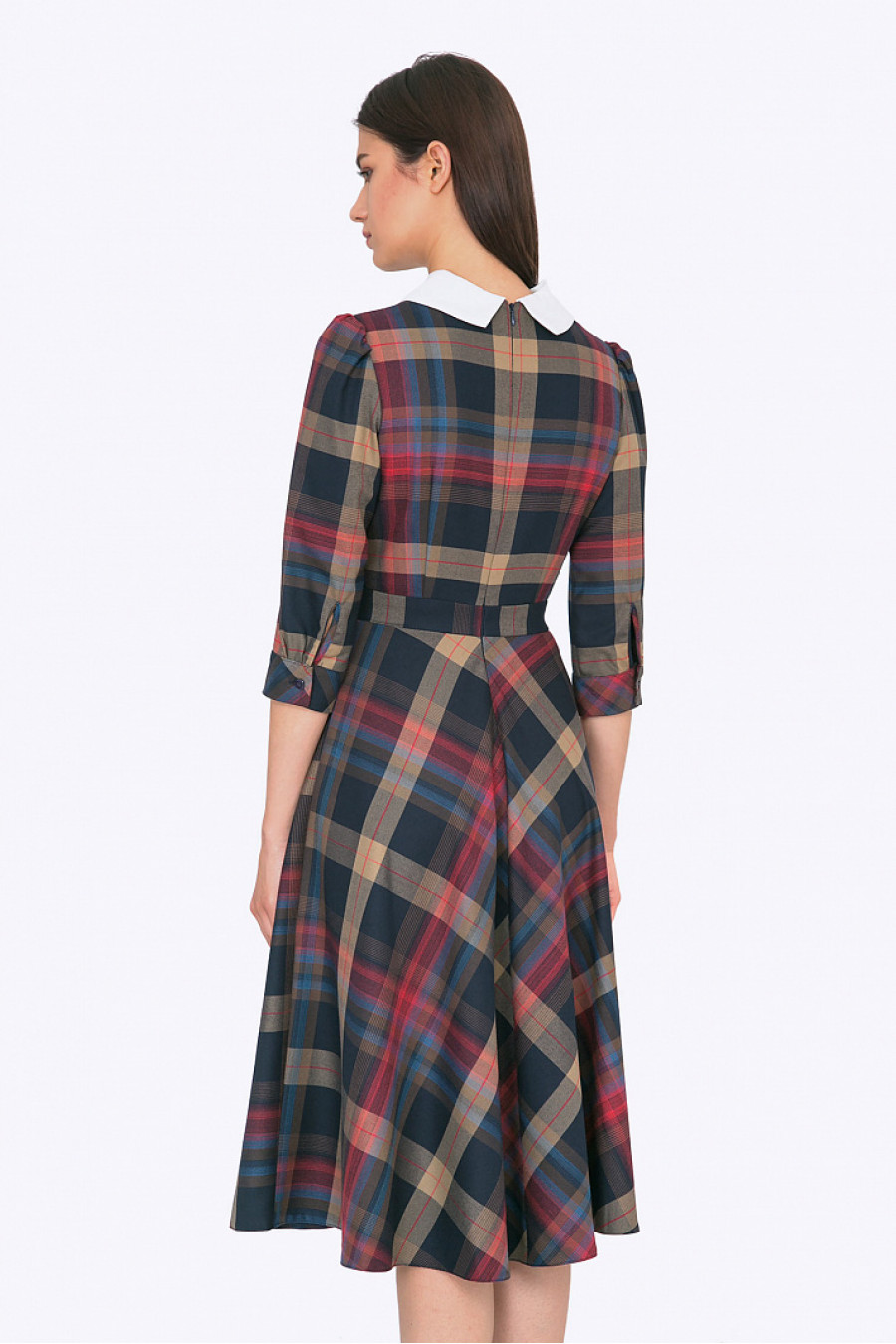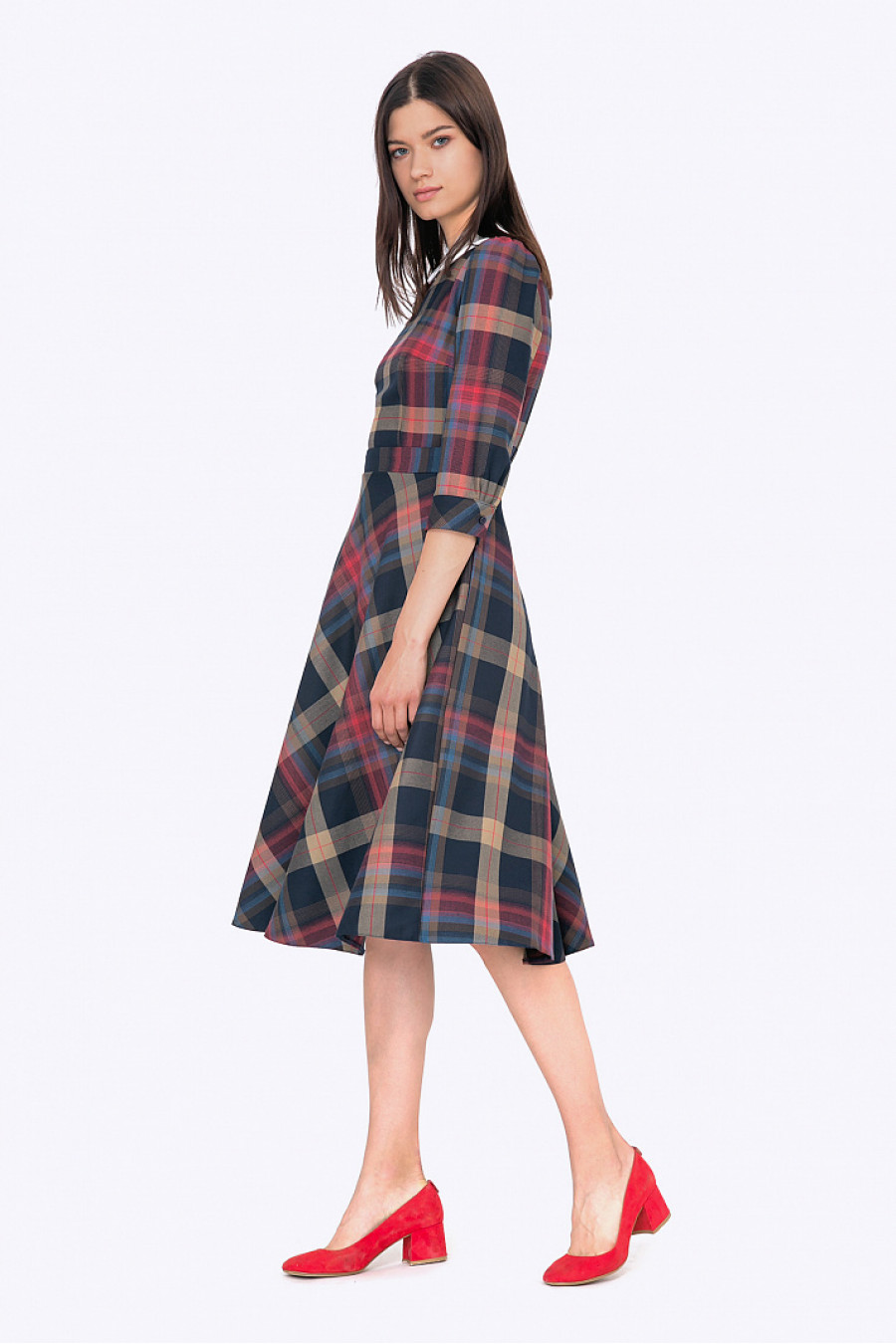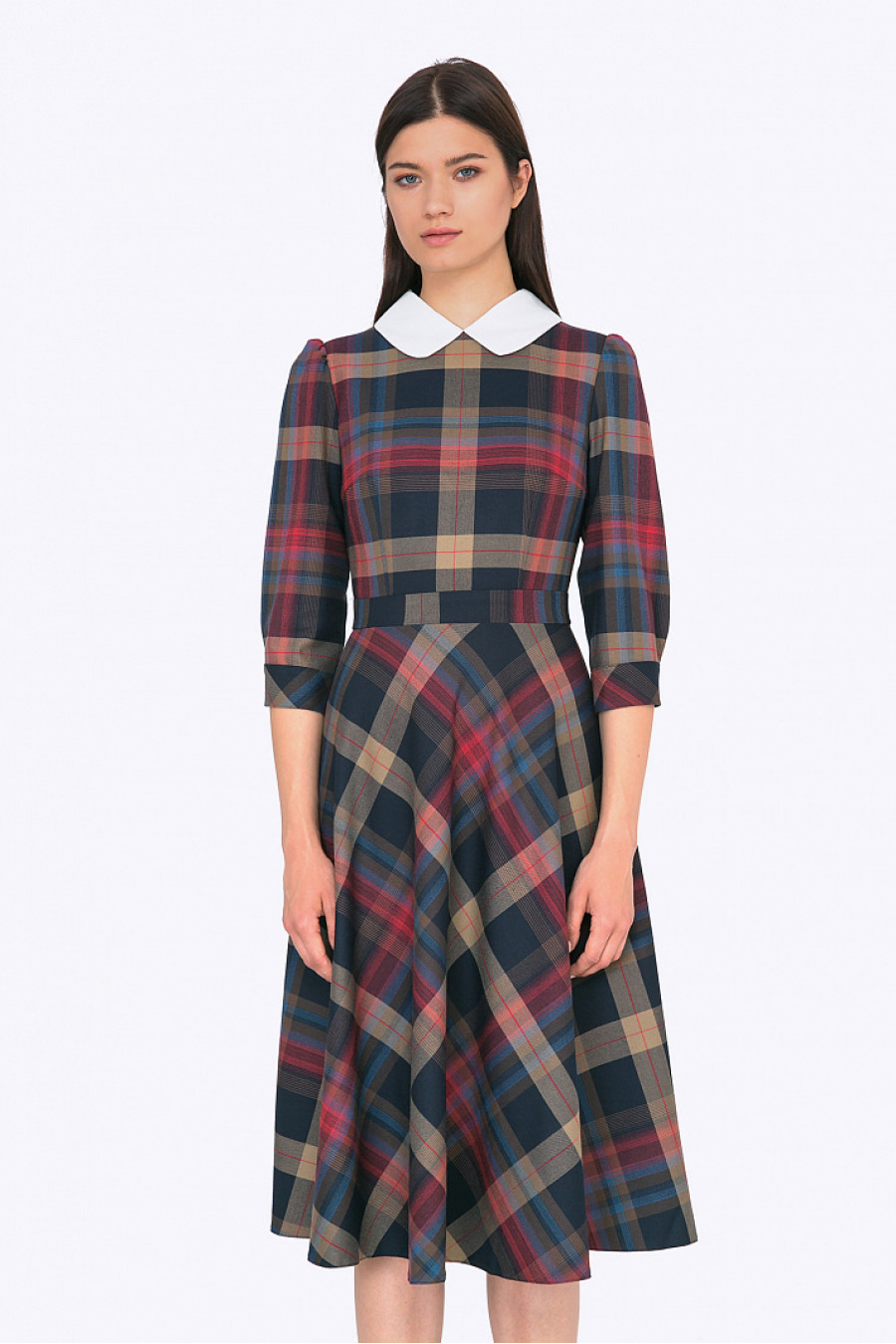 Женственное платье с воротником.Модель приталенного силуэта.Ткань в клетку. Без подкладки. Рукава 3/4. Платье отлично подойдет для повседневной носки, а с аксессуарами станет отличным выбором для романтического свидания. Рост фотомодели 178см.