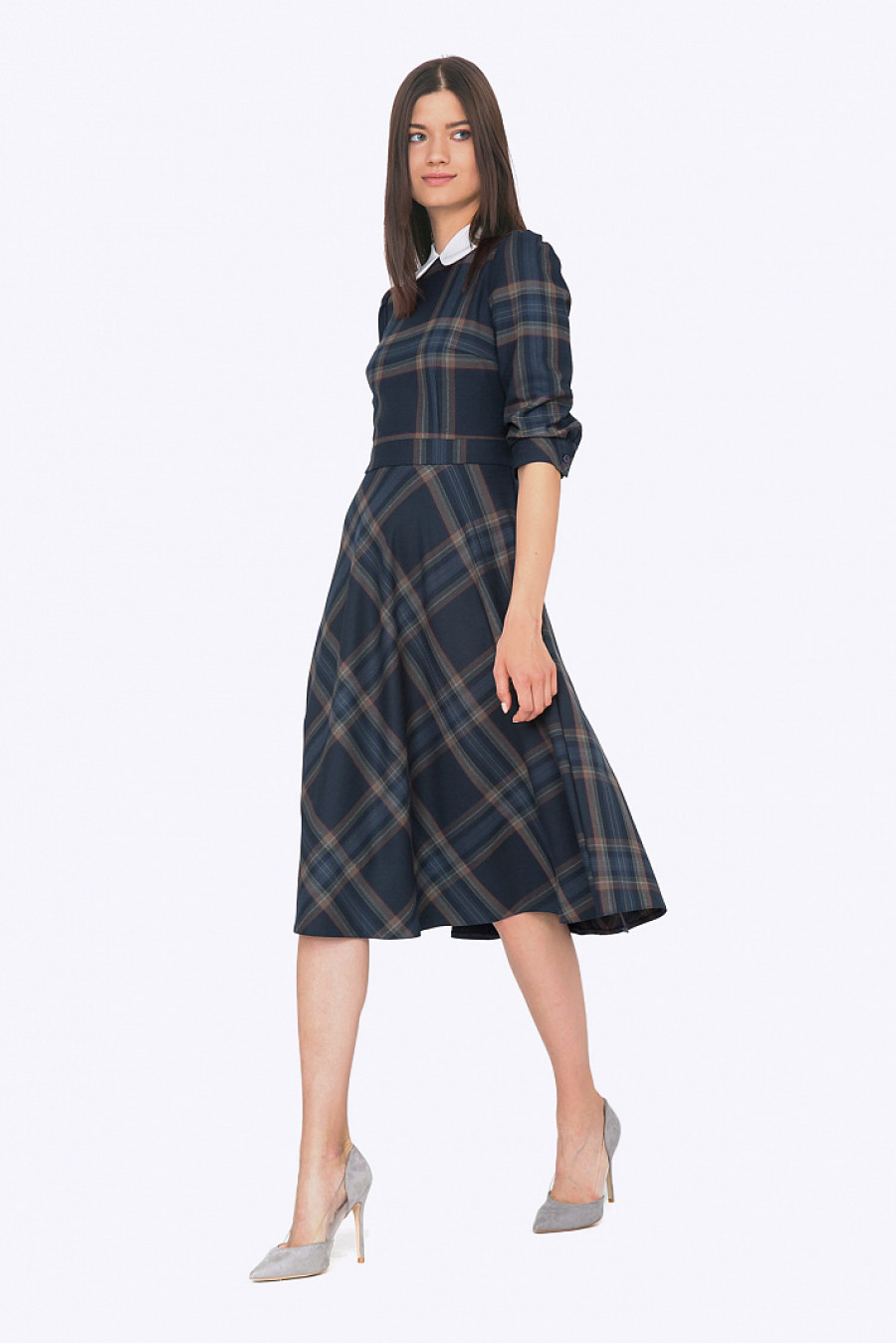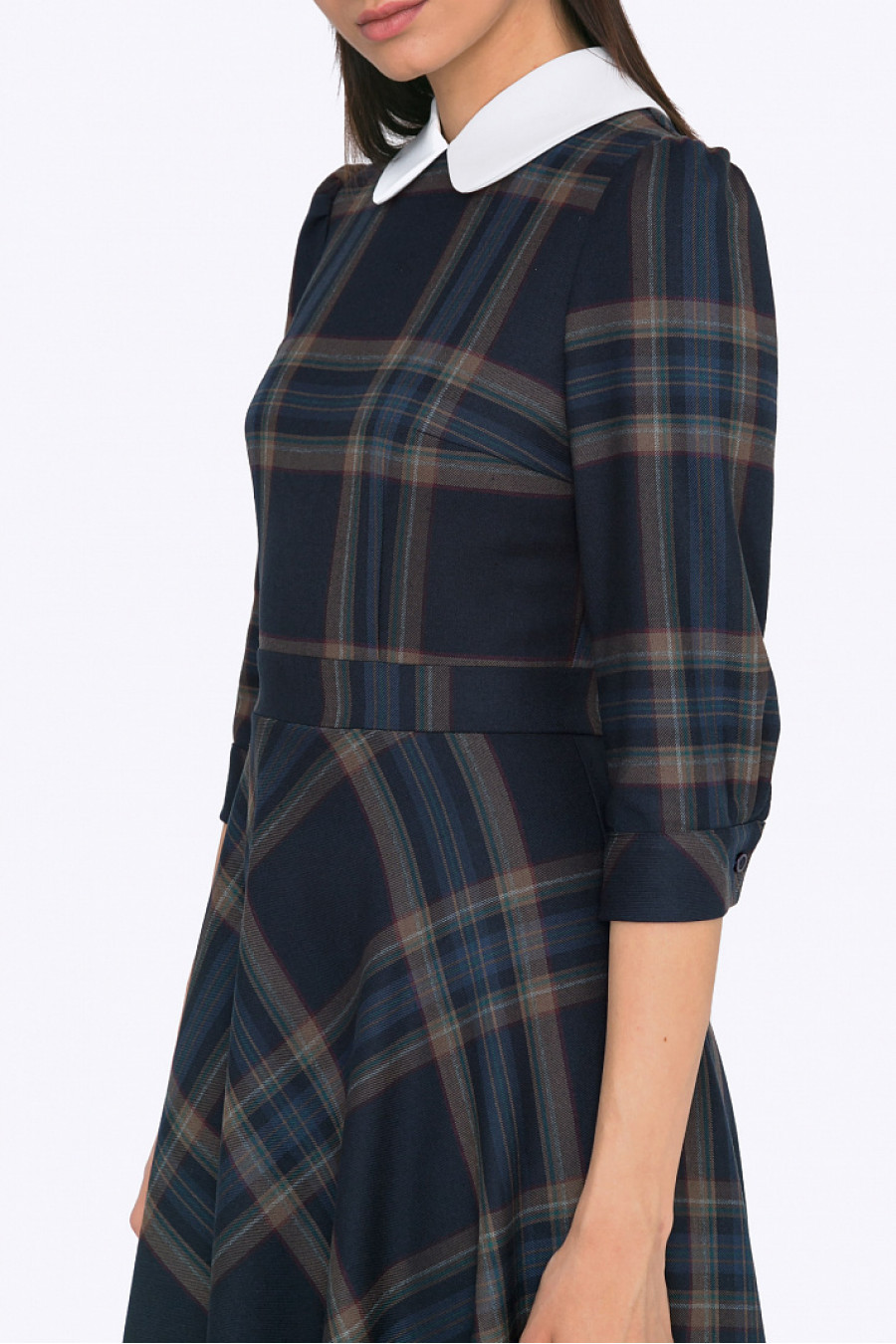 Женственное платье с воротником.Модель приталенного силуэта.Ткань в клетку. Без подкладки. Рукава 3/4. Платье отлично подойдет для повседневной носки, а с аксессуарами станет отличным выбором для романтического свидания. Рост фотомодели 178см.