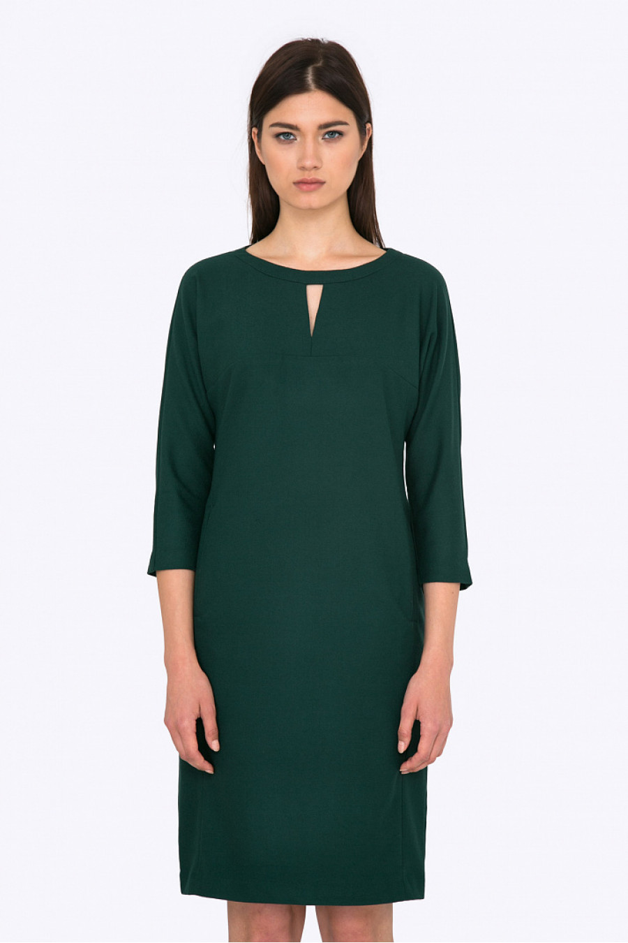 Платьес фигурнымвырезом. Ткань плотная. Подкладка из полиэстера, рукава 3/4.Модель визуально стройнит и хорошо сидит по фигуре. Прекрасный выбор для праздничного мероприятия и на каждый день. Рост фотомодели 178см. Длина градируется от размера к размеру.