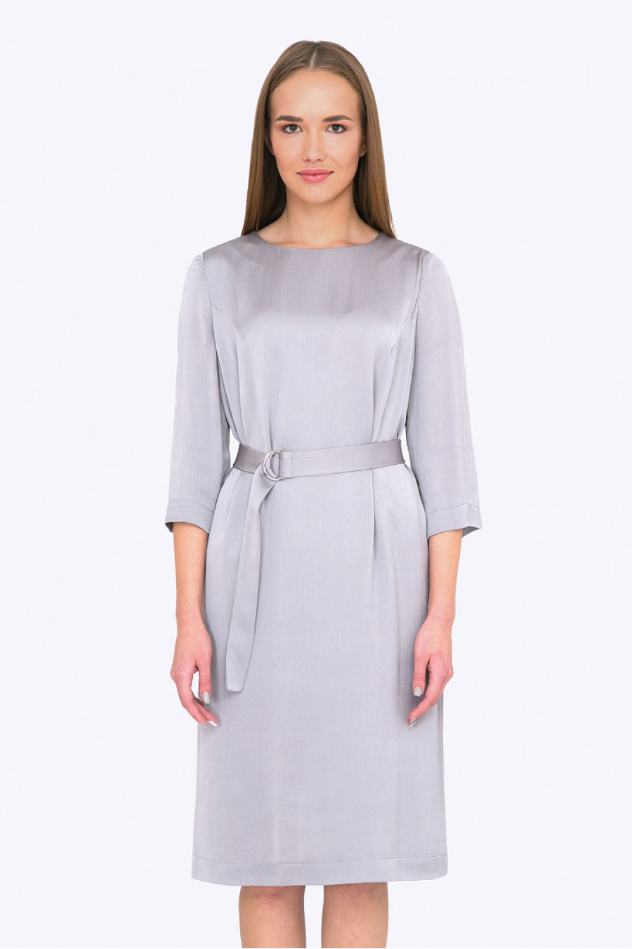 Уникальное платье из струящейся глянцевой ткани оттенка ледяная Антарктида не оставит равнодушными поклонниц образа Снежная Королева, - сдержанных и, в то же время, влекущих женщин. Лаконичный свободный крой, гармоничные линии ворота и рукавов, отличная длина, тонкий пояс с серебристой пряжкой, - делают эту модель универсальным решением как для элегантного делового образа, так и для вечернего vip-наряда. Это эстетичное платье не нуждается в дорогих аксессуарах, стильно подчеркнут ослепительный look хорошие туфли и сумочка (клатч). Модель идеально смотрится на блондинках и брюнетках со светлыми глазами. Есть подкладка. Рост фотомодели 174 см.