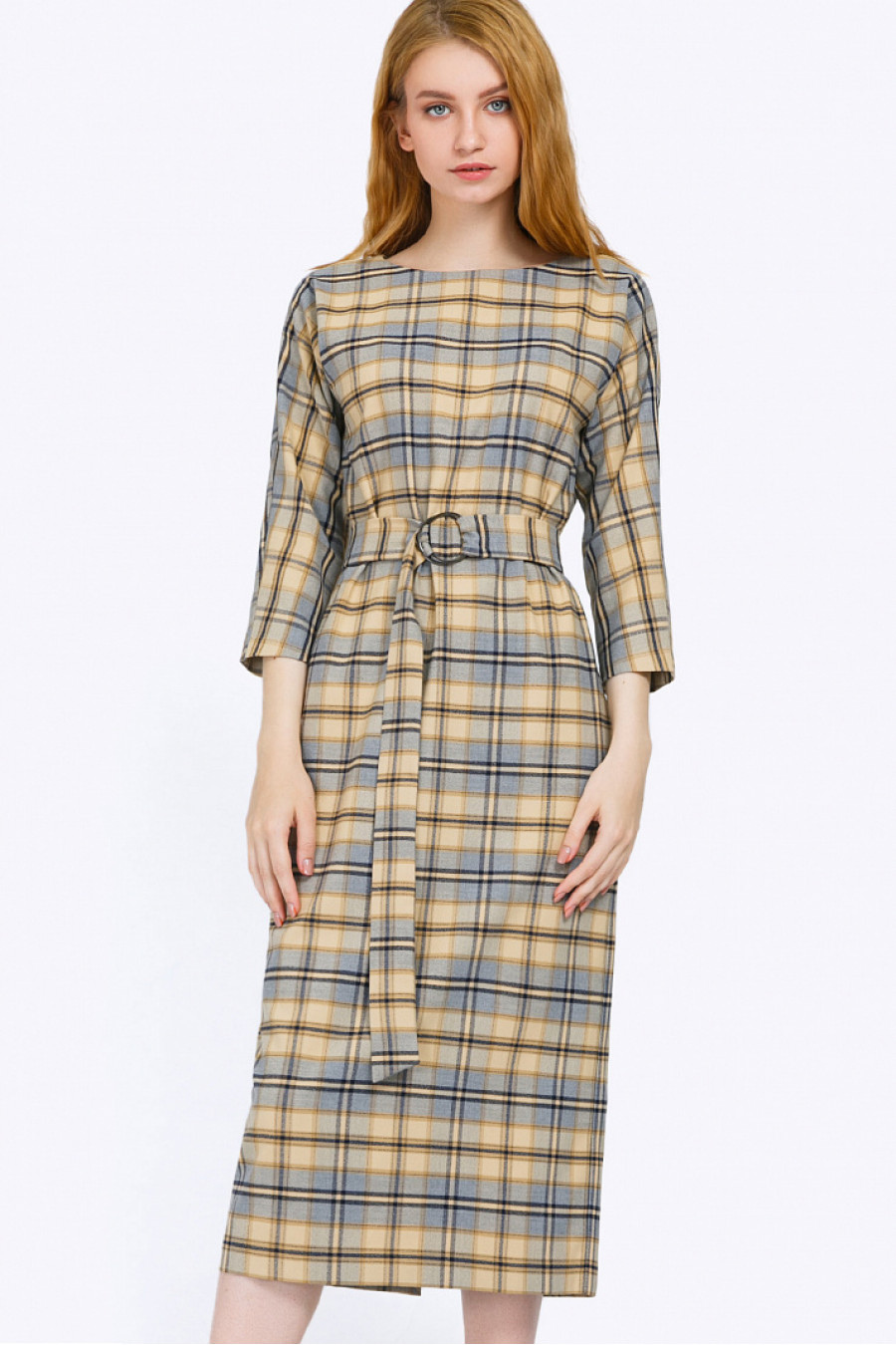 Платье-миди в крупную клетку, сочетающую тёплую и холодную цветовую
