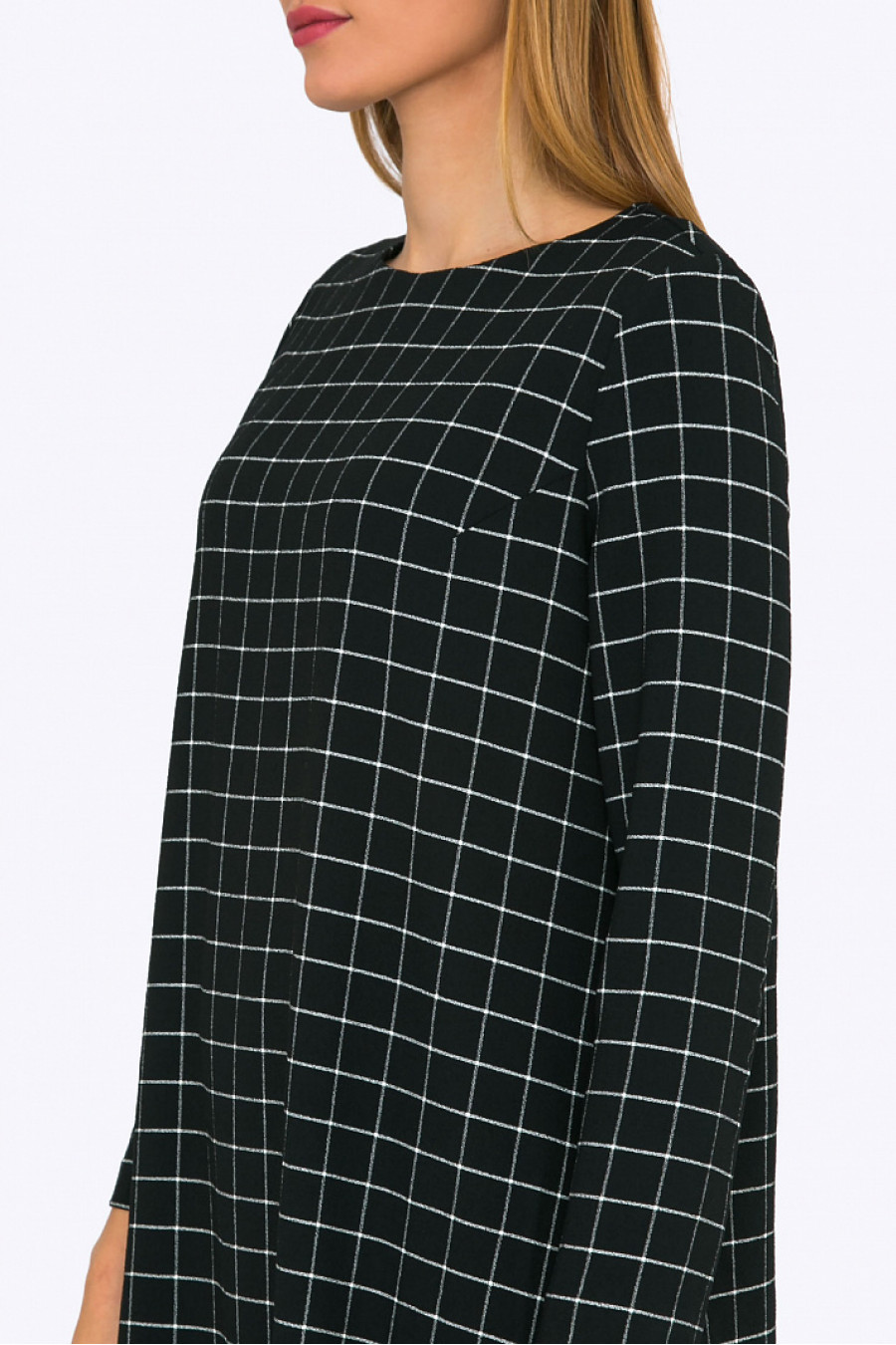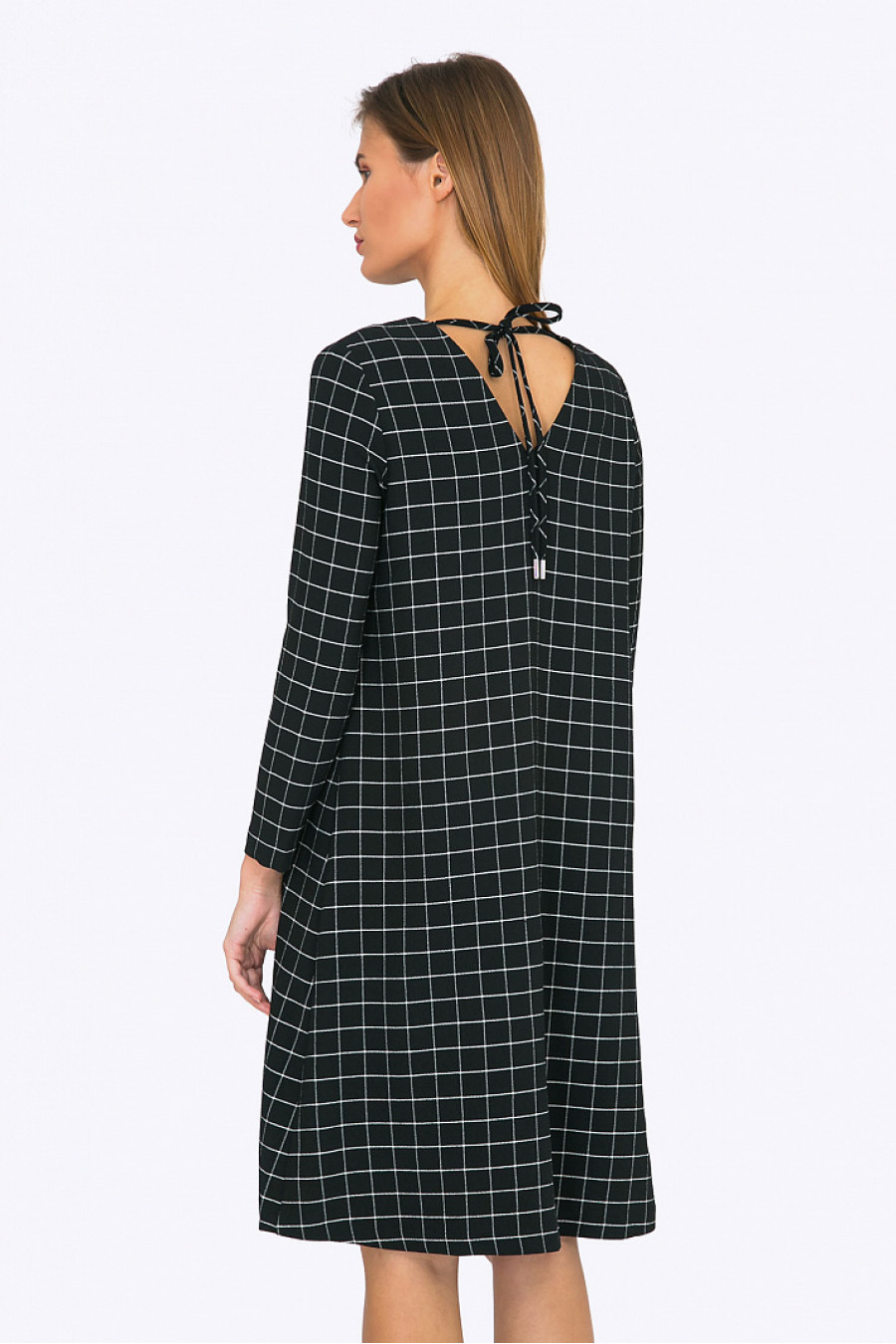 Платье А-силуэта с вырезом на спинке. Ткань средней плотности в клетку. Есть подкладка.Модель хорошо сидит по фигуре, комфортная в носке. Прекрасный выбор на каждый день и для праздничного мероприятия. Рост фотомодели 175 см.