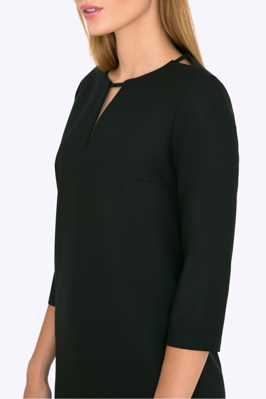 Платье с фигурным вырезом. Ткань плотная. Без подкладки, рукава 3/4.Модель визуально стройнит и хорошо сидит по фигуре. Прекрасный выбор для праздничного мероприятия и на каждый день. Рост фотомодели 178см. Длина градируется от размера к размеру.