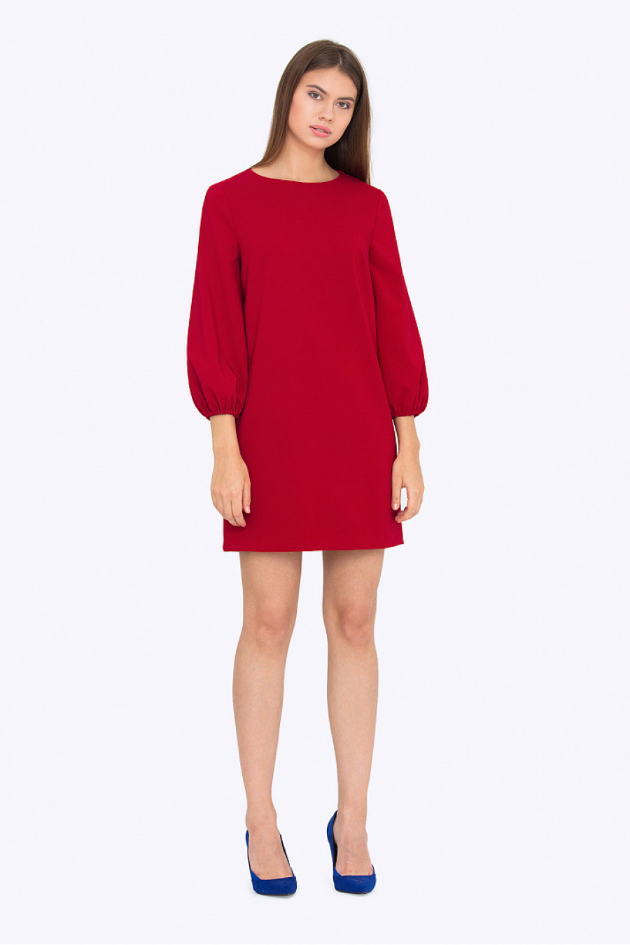 Платье прямого кроя с широкими рукавами. Ткань средней плотности. Застежка - молния на спинке. Без подкладки. Модель эффектно смотрится благодаря пышным рукавам. Прекрасный выбор для офиса и праздничного мероприятия. Рост фотомодели 178см.