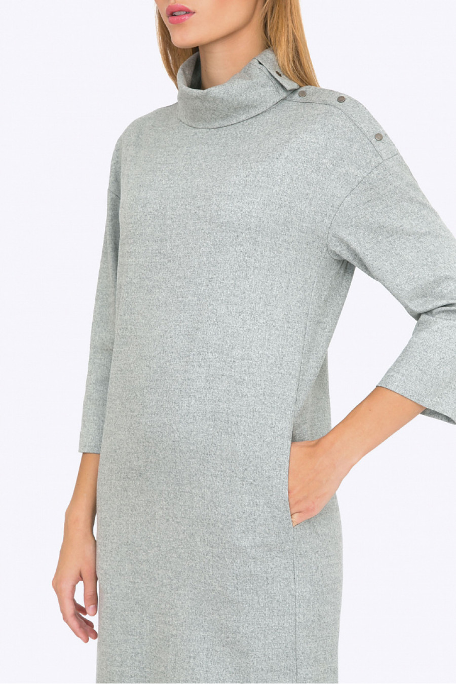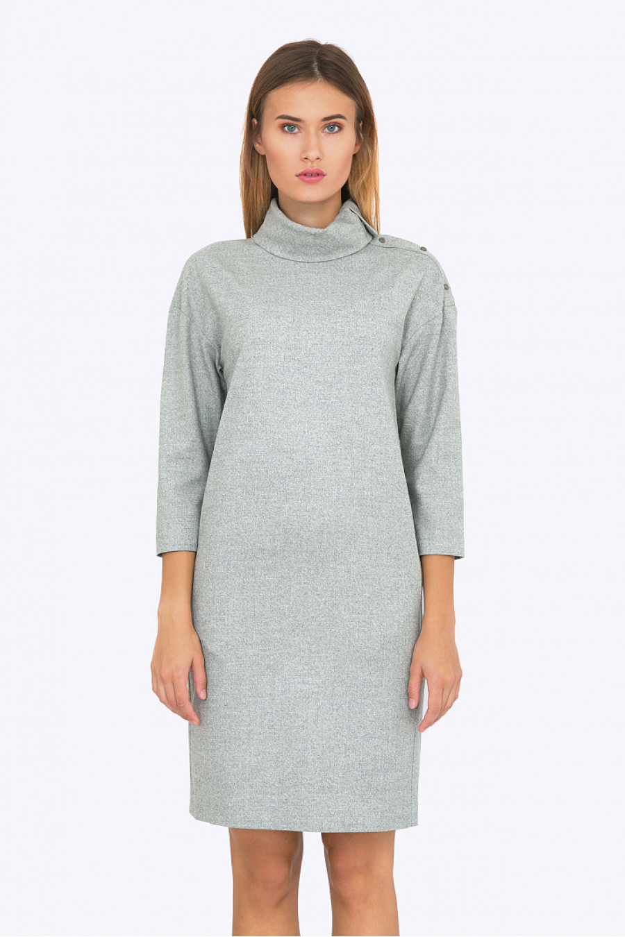Платье прямого кроя с воротником хомут. Воротник застегивается на кнопки. Ткань мягкая. Без подкладки.Рукава 3/4. Стильная модель на каждый день, хорошо сидит по фигуре. Рост фотомодели 175 см.