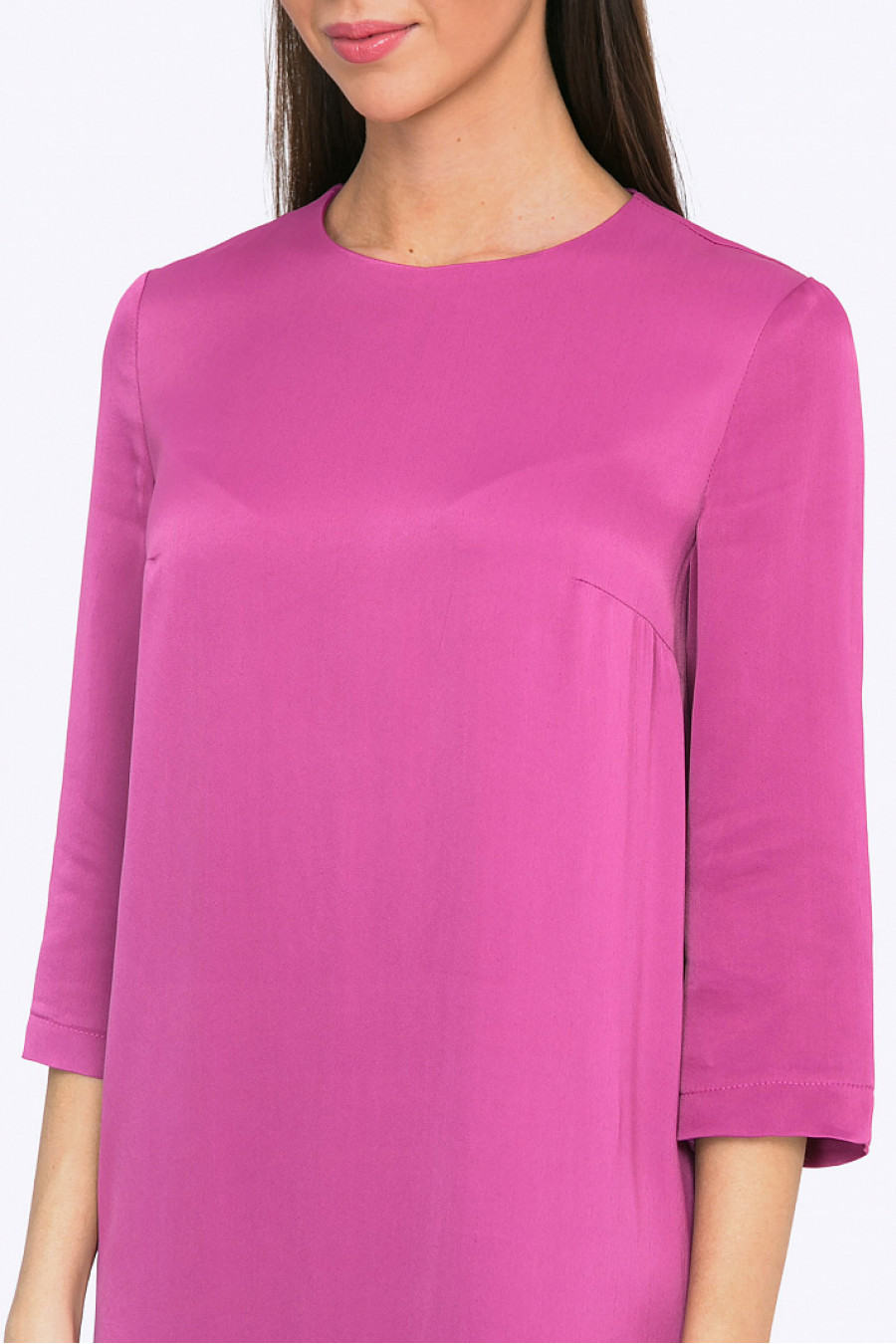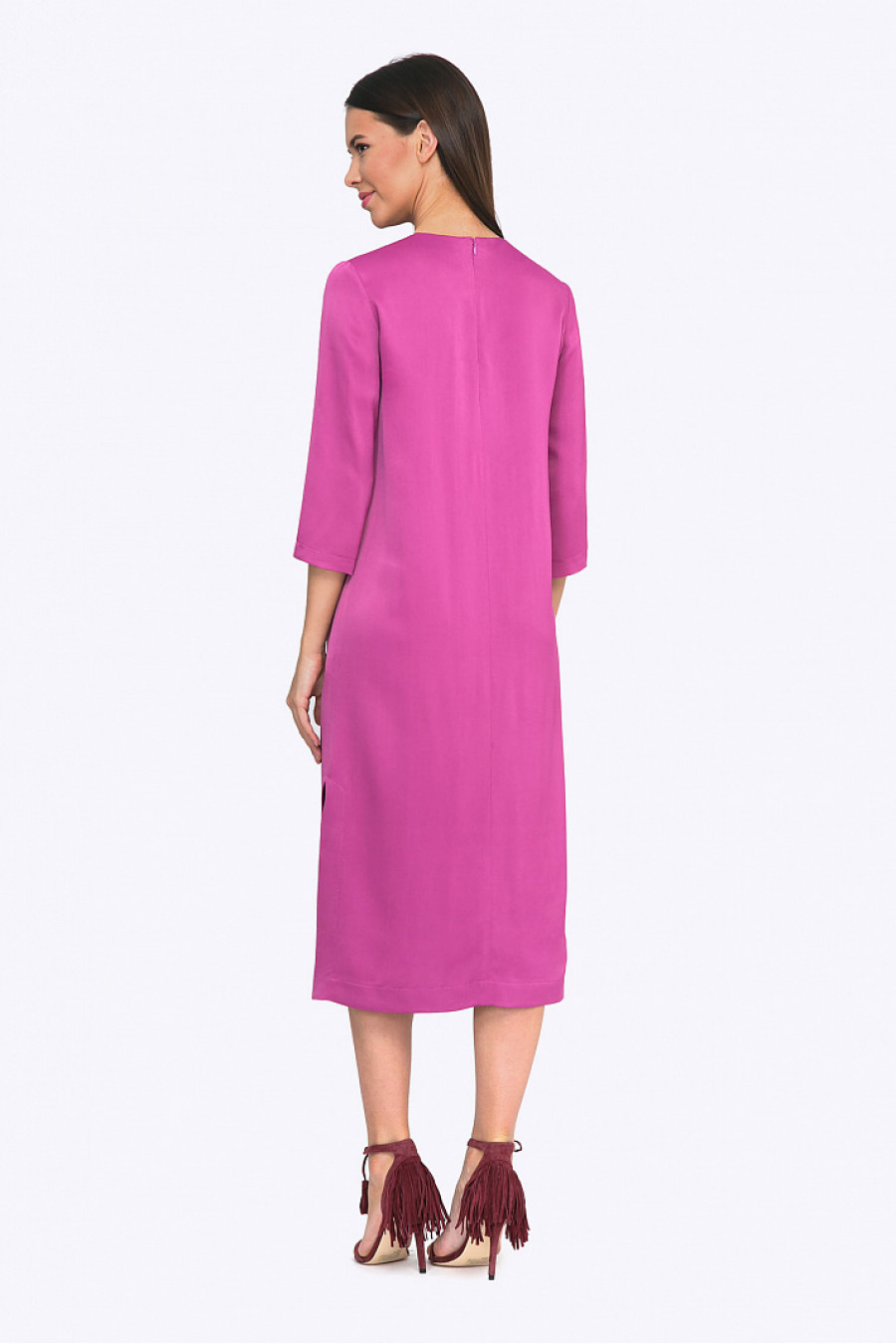 Элегантный и привлекательный оттенок шиповниковый цвет, глянцевая струящаяся ткань, прямой минималистичный силуэт, выразительные боковые разрезы - сделают обладательницу этой модели настоящей изюминкой вечера или самой стильной сотрудницей офиса.Эксклюзивный лаконичный дизайн платья самодостаточен и не нуждается в богатых аксессуарах, эстетику образа прекрасно подчеркнут креативные шпильки или балетки с маленьким клатчем - любых оттенков пурпурного. Стильный look будет отлично смотреться на шатенках и ярких блондинках. Свободный крой платья подойдет любому типу фигуры. Рост фотомодели 172 см. Рекомендуется деликатный уход.