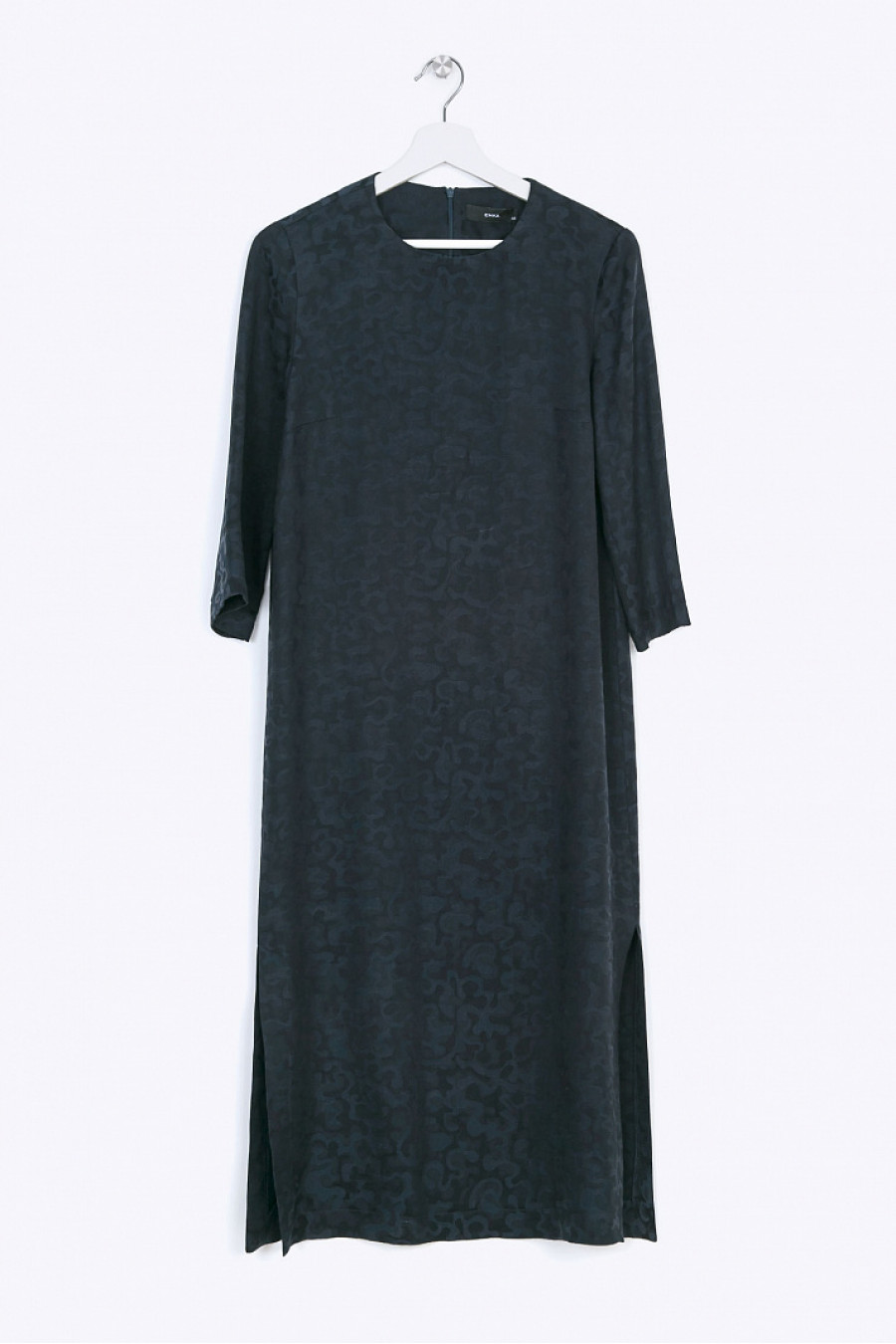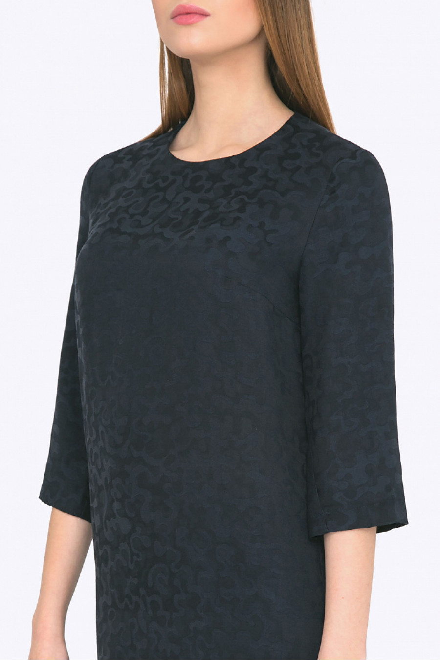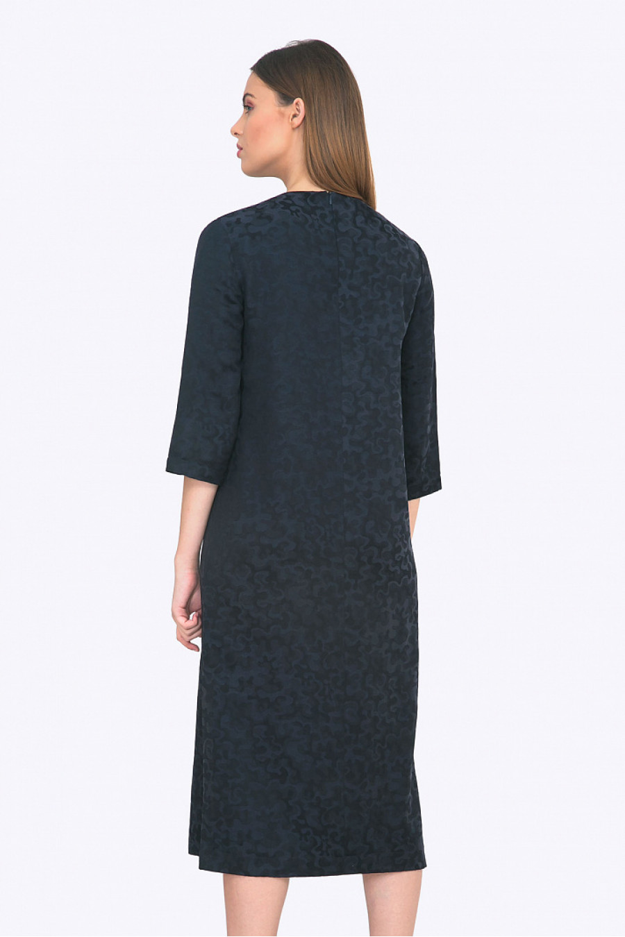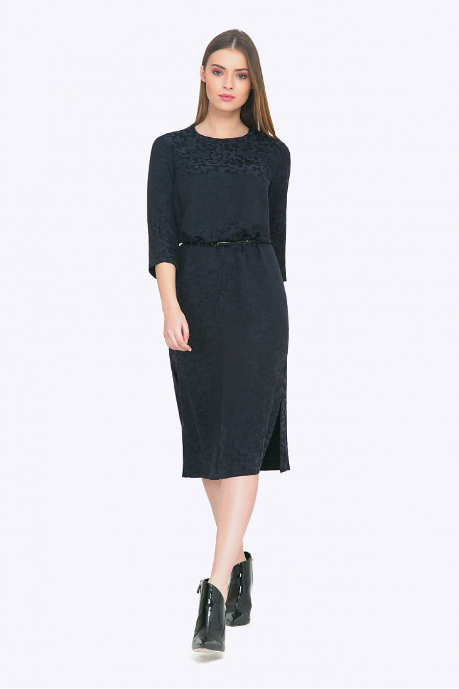 Сдержанная элегантность темно-синего цвета, лаконичный фасон, богатая ткань ( набивной жаккард с современными узорами) - делают эту модель незаменимой для выхода в свет на любое праздничное вип-мероприятие. Эстетичные линии силуэта и разрезы по краям подола подчеркнут благородство образа, а хорошо подобранные дорогие украшения ( короткое колье, удлиненные серьги, тонкие браслеты) - дополнят оригинальный вечерний look. Практичная смесовая ткань с содержанием вискозы поможет отличной посадке, свободный крой платья подойдет любому типу фигуры. Ремешок продается отдельно. Модель без подкладки. Рост фотомодели 176 см.