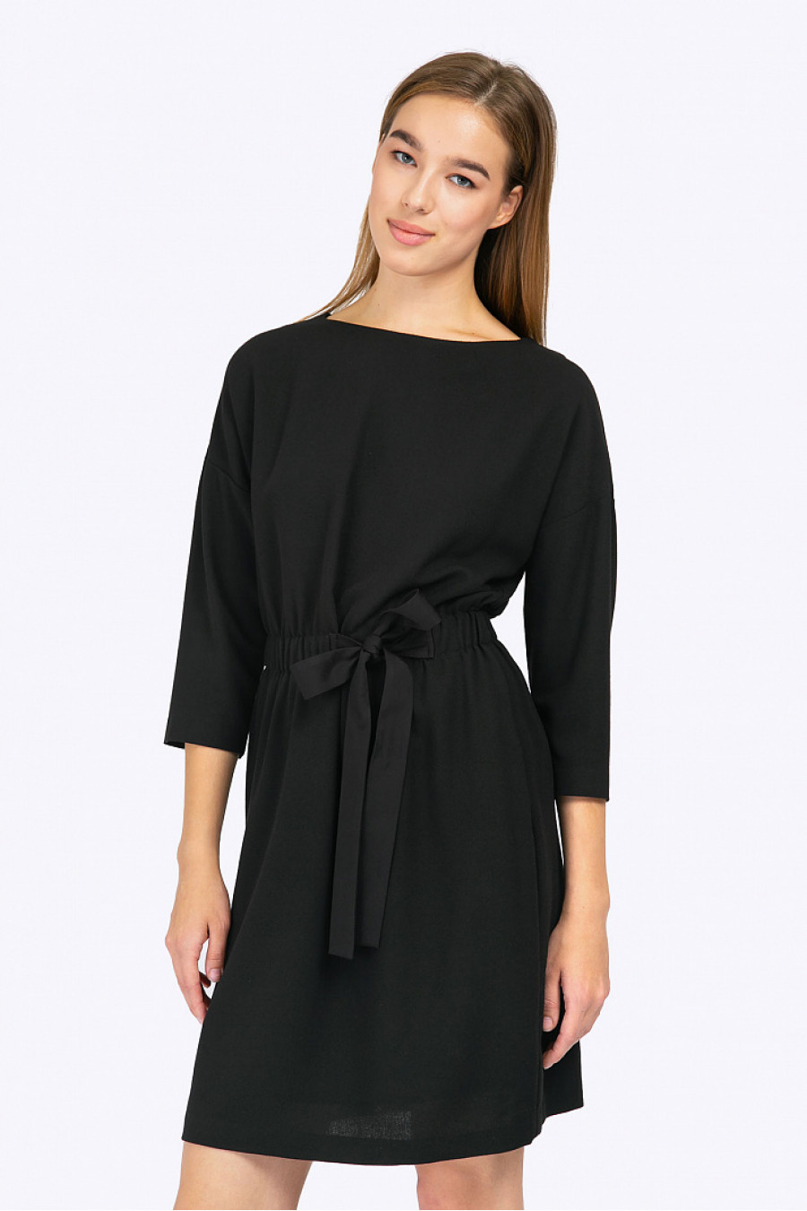 Оригинальное платье минималистичного дизайна станет отличным выбором для женщин, ценящих свою индивидуальность. Свободныйкрой с заниженной линией плеч и рукавом полу-регланом - не стеснит движений, элегантный декоративный бант на слегка присборенном поясе - подчеркнет талию, гармоничные линии ворота и рукавов выделят эстетику шеи и запястий. Мягкая фактурная ткань с содержанием вискозы приятна в носке и проста в уходе. Рост фотомодели 174 см.