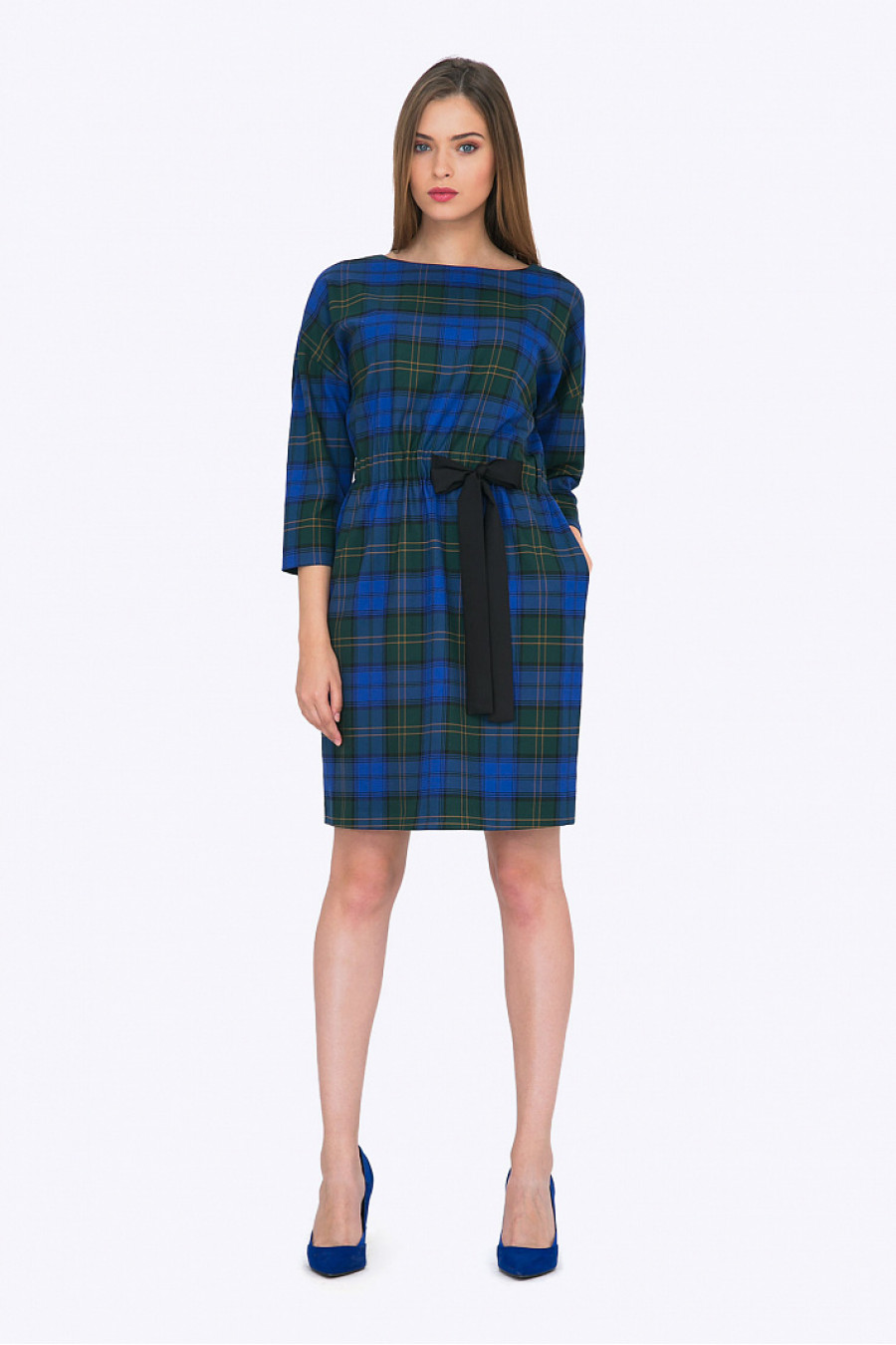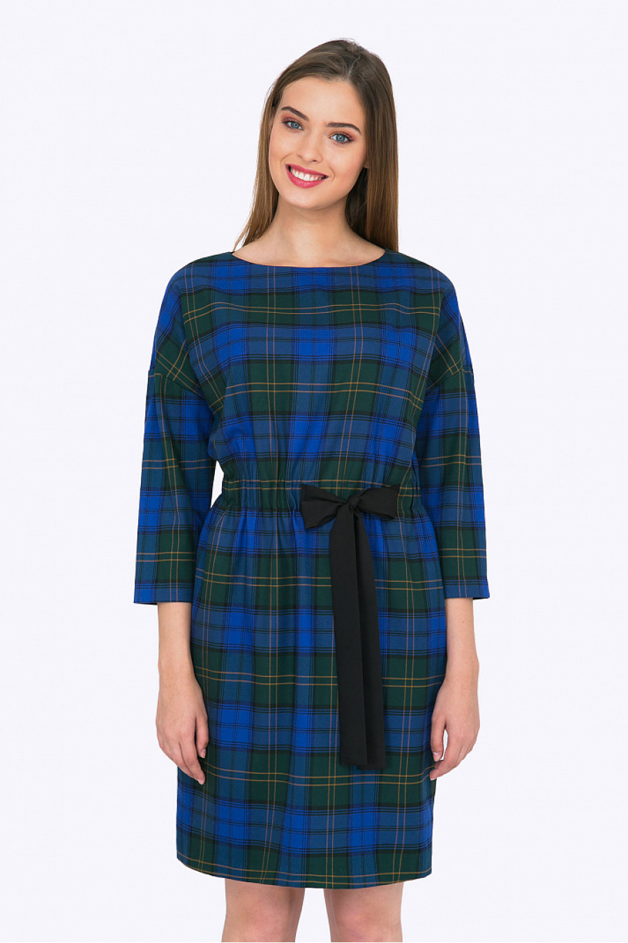 Платье приталенного силуэта со спущенной линией плеча.На талии сборка на резинку и бант. Ткань мягкая. Модельхорошо сидит по фигуре. Отличное платье для создания стильного образа. Рост фотомодели 177см.