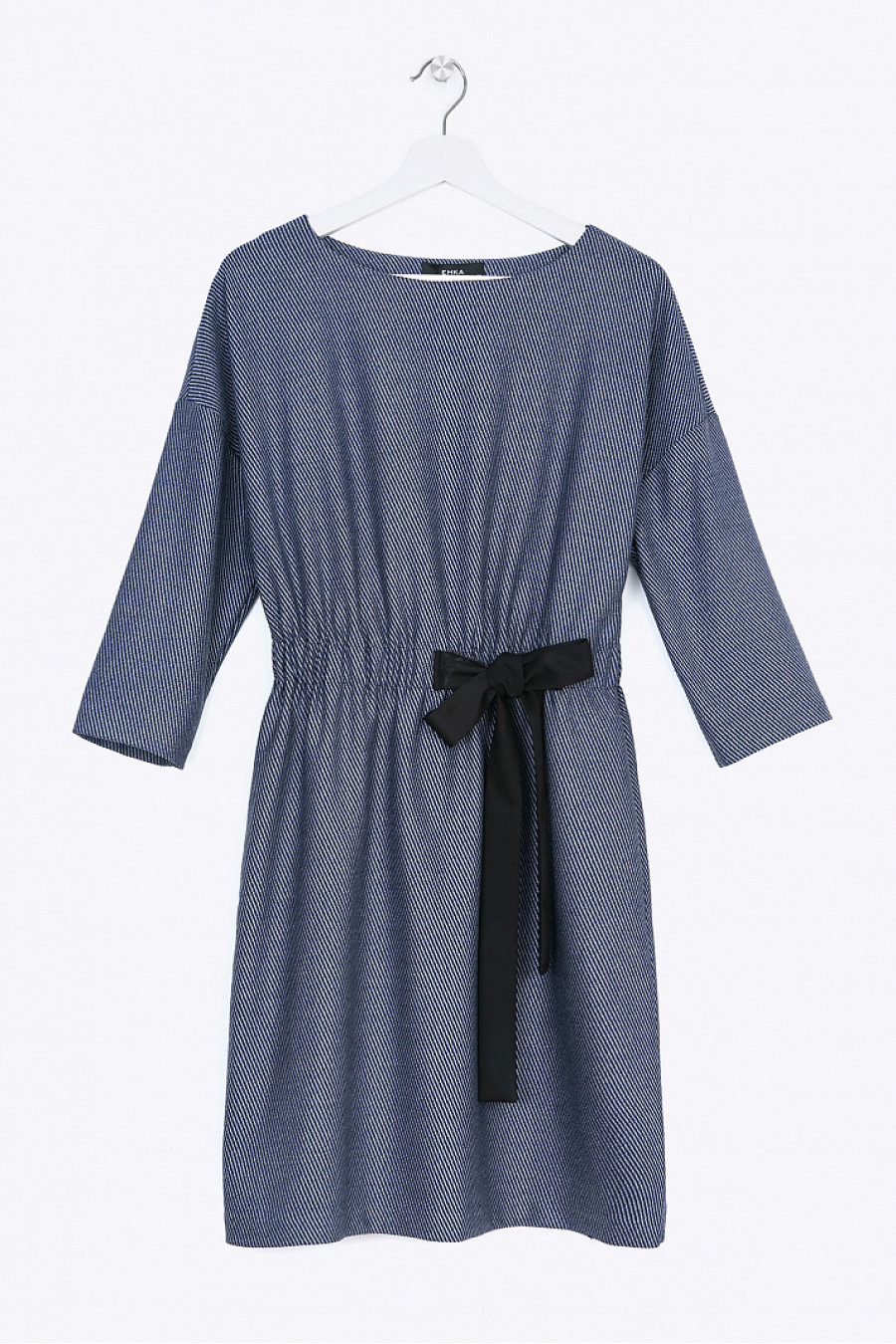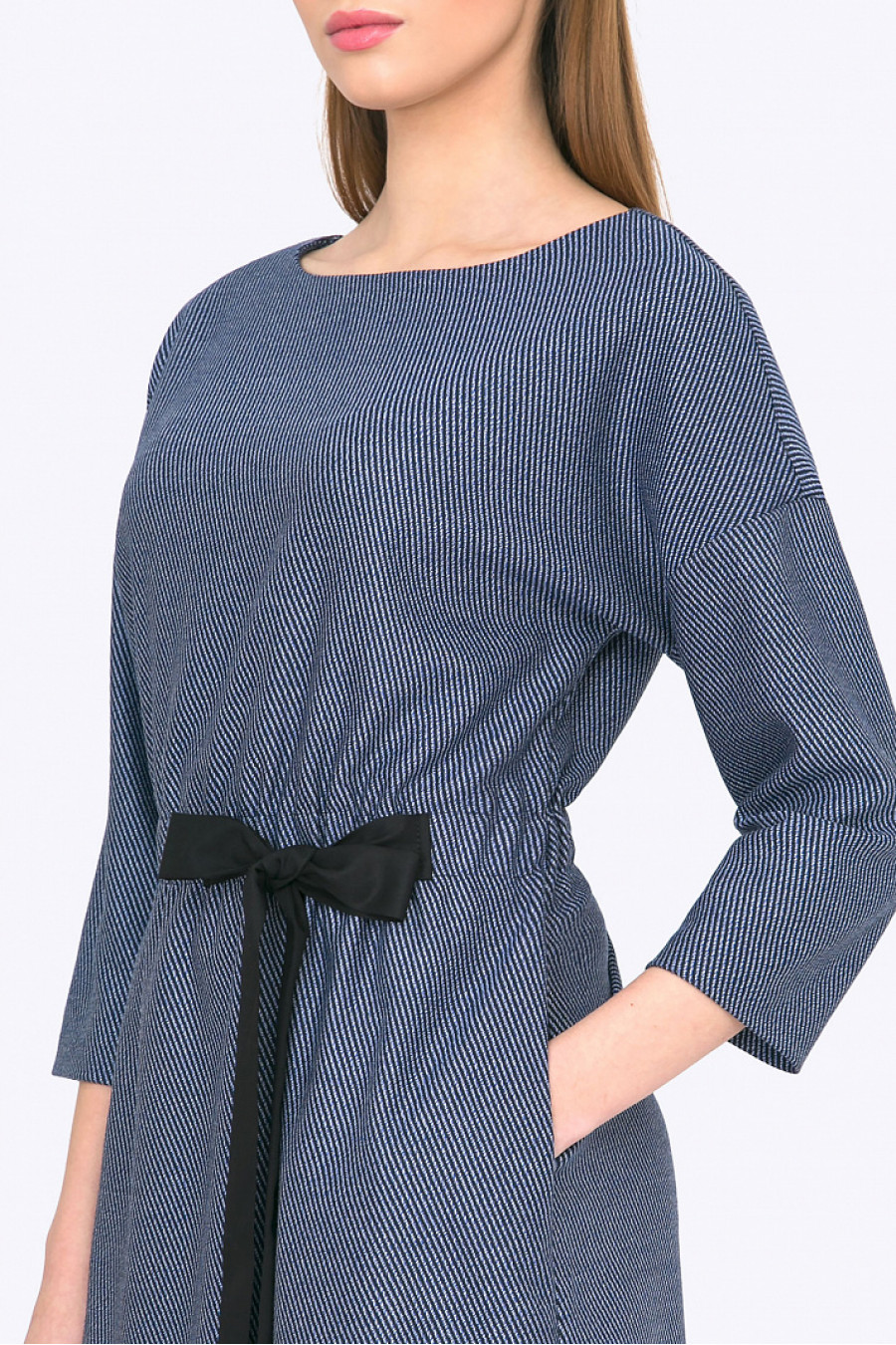 Уютное и стильное платье минималистичного дизайна станет отличным выбором для женщин, ценящих свою индивидуальность. Свободный прямой крой с заниженной линией плеч и рукавом полу-регланом - не стеснит движений, элегантный декоративный бант на слегка присборенном поясе - подчеркнет талию, гармоничные линии ворота и рукавов выделят эстетику шеи и запястий. Практичный модный цвет, образованный двумя нитями (синей и черной) с белыми вкраплениями сделает образ современным. Мягкая фактурная ткань с содержанием вискозы приятна в носке и проста в уходе. Модель без подкладки.Рост фотомодели 176 см.