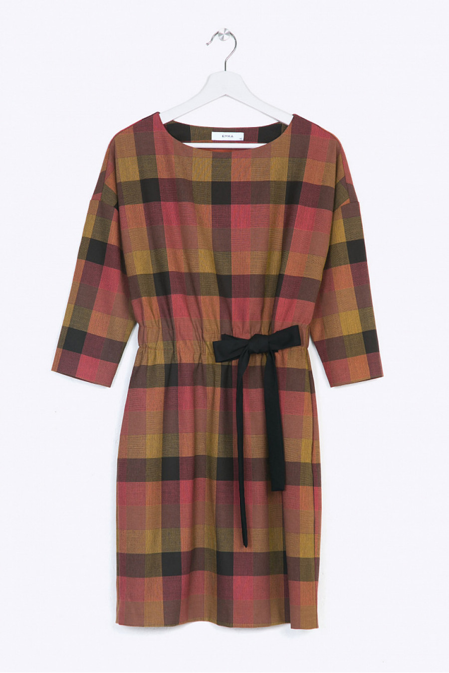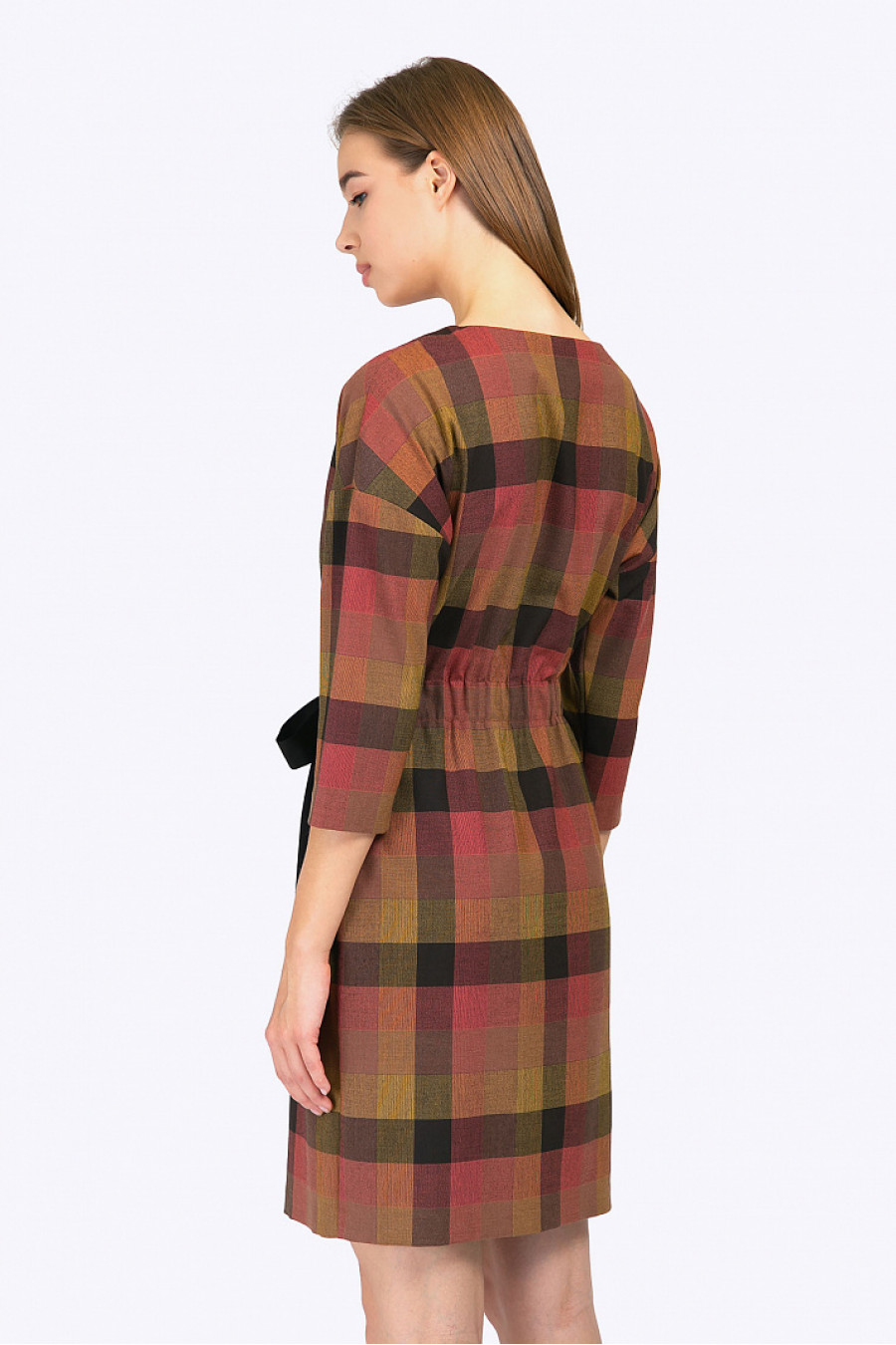 Современное лаконичное платье в стильную яркую клетку с присборкой на талии и декоративным поясом-бантом - отличное решение для создания актуального городского образа. Выразительная красная сумка, лаковые лоферы или мокасины дополнят модный сет. Модель без подкладки. Рост фотомодели 175 см.