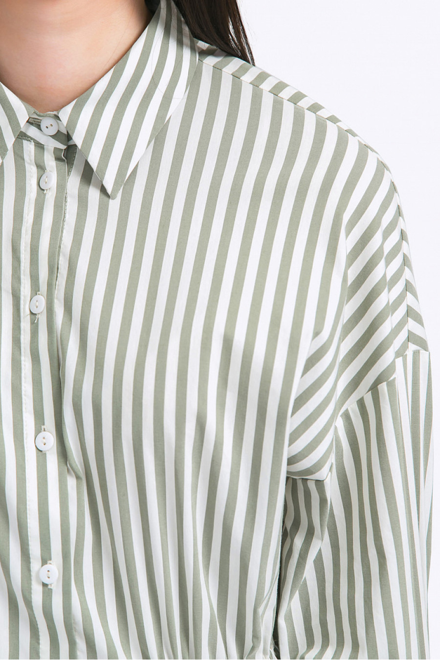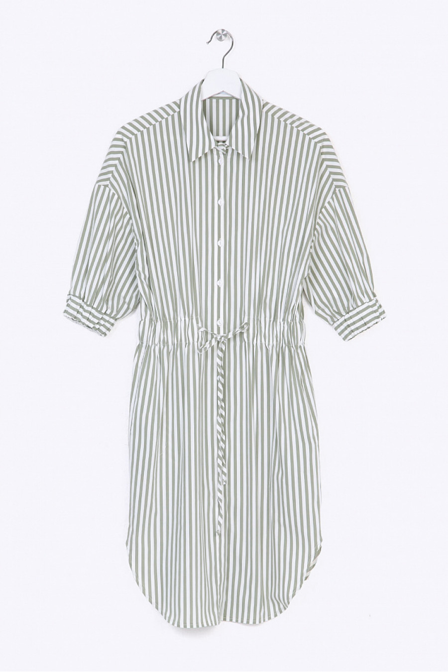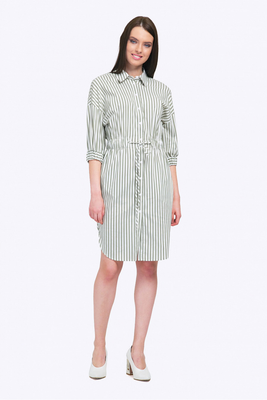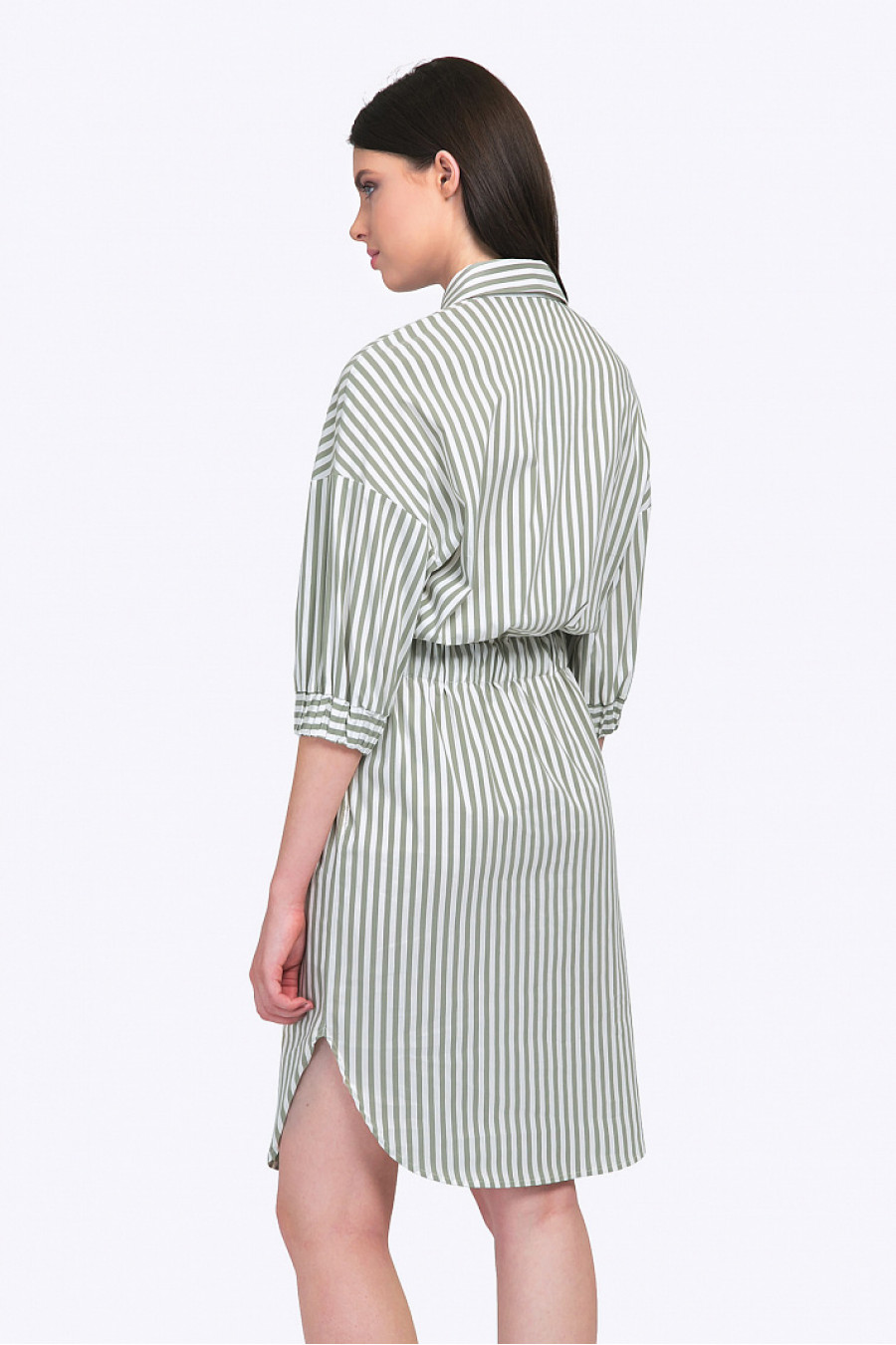 Платье-рубашка в полоску с рукавами ¾ с заниженной проймой. Модель
