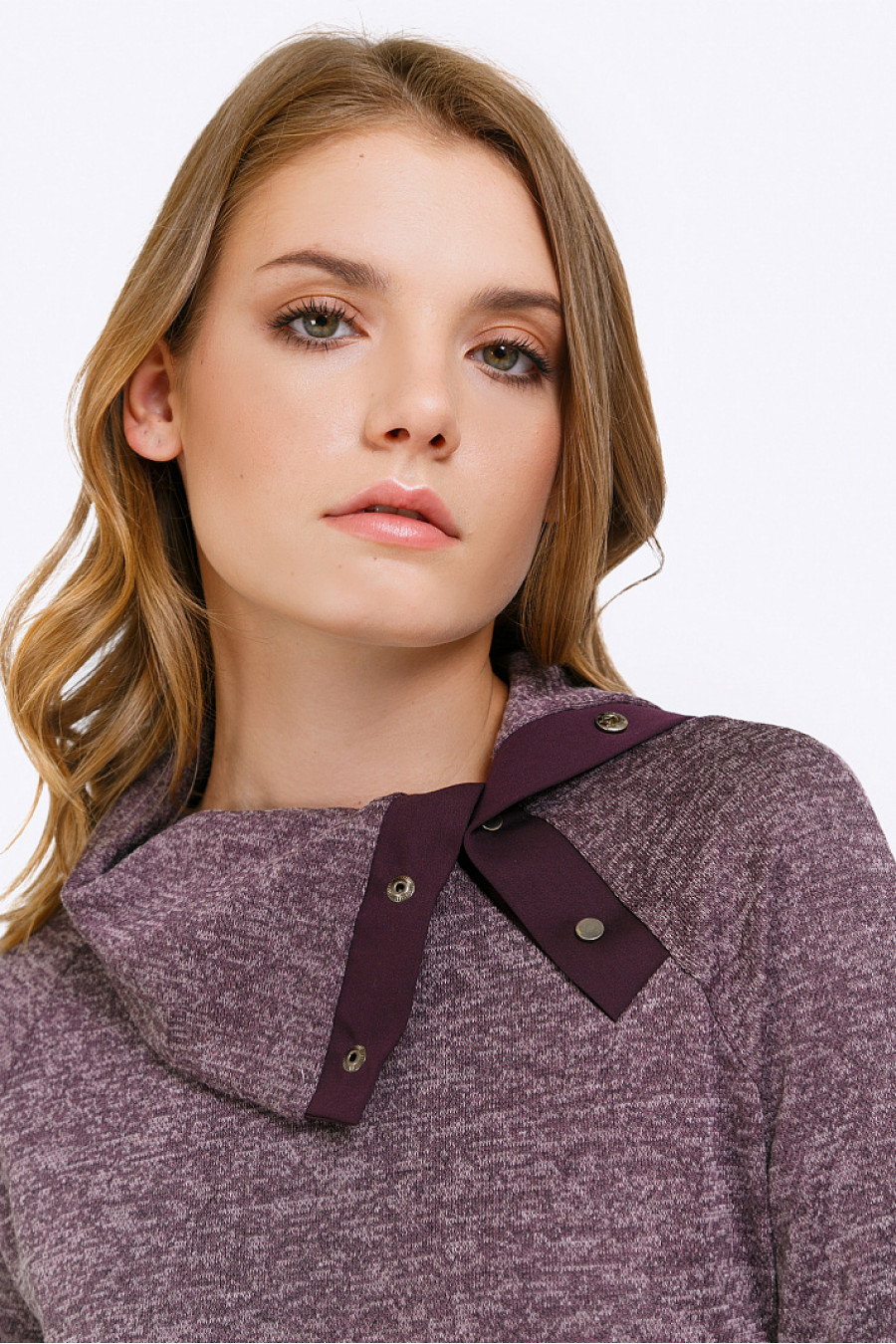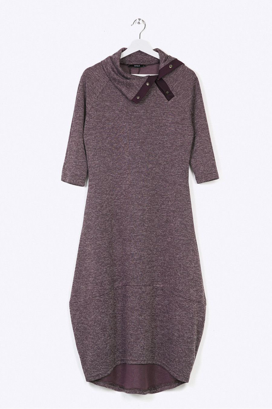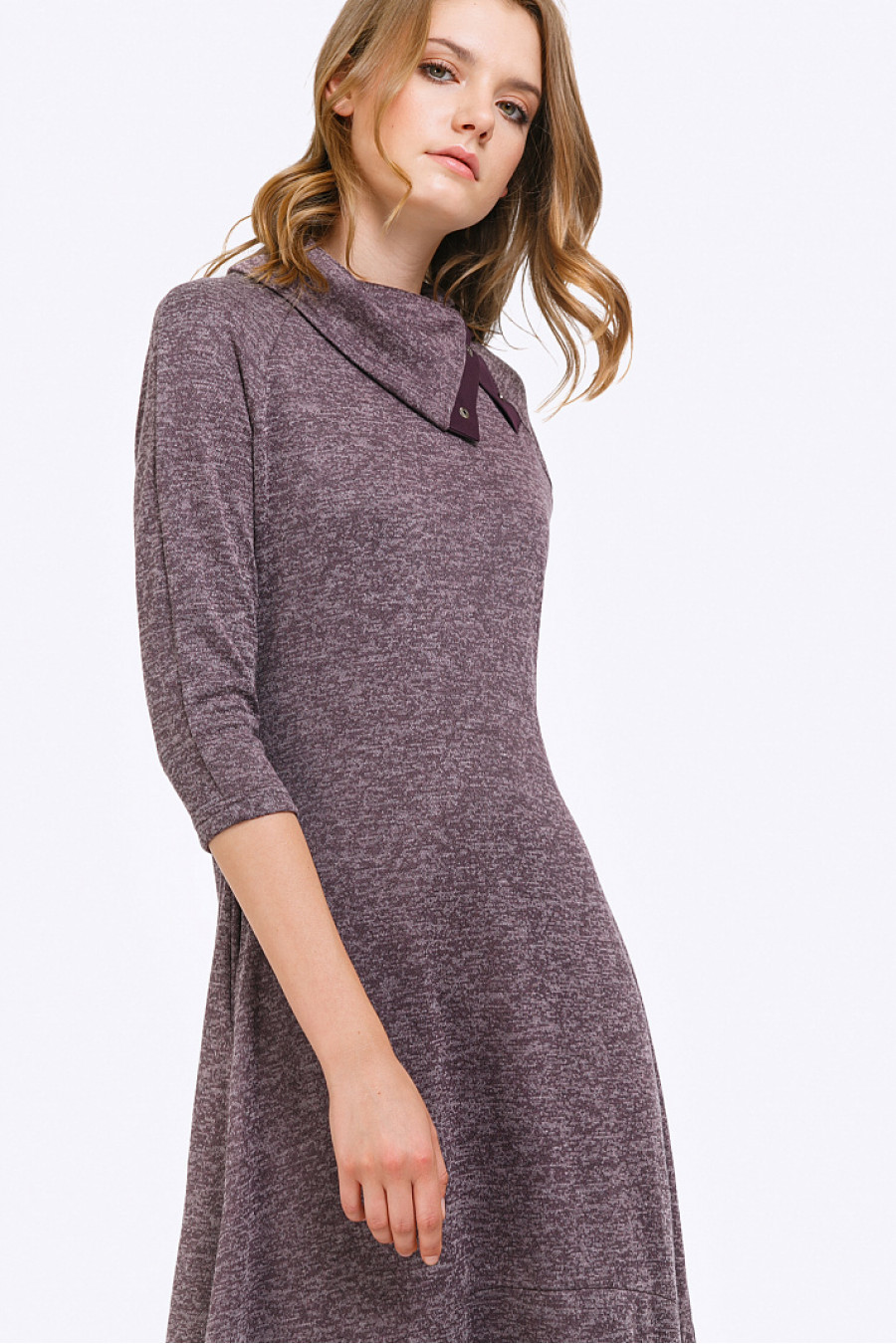 Бордовое платье-баллон из трикотажного полотна с меланжевым эффектом.