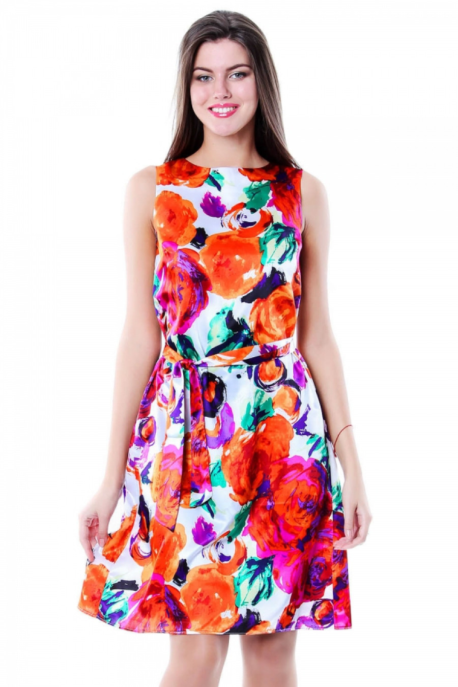 Короткое платье из легкой ткани без рукавов. Округлый вырез горловины. Длина платья 93 см.