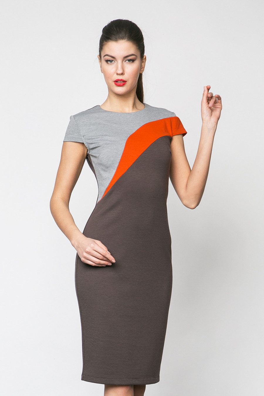 Обтягивающее платье с яркой полосой вдоль груди, выгодно подчеркнет фигуру обладательницы.