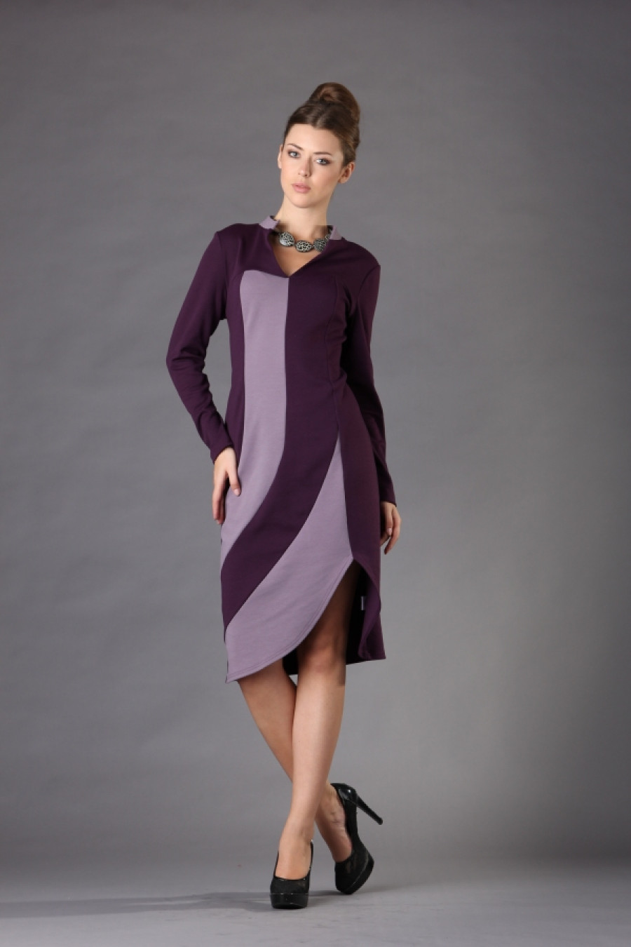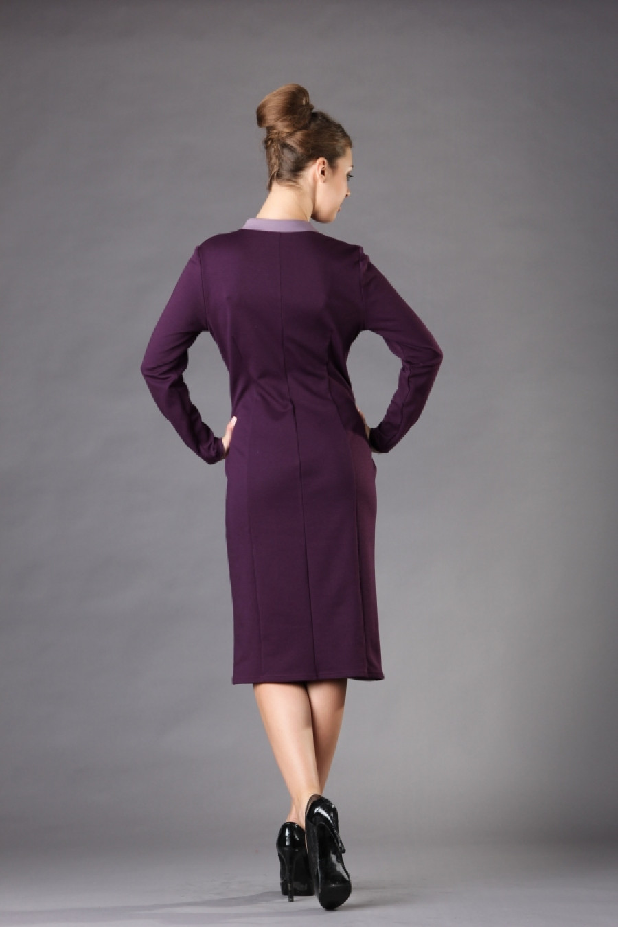 Стильное платье с длинными рукавами . Прилегающий силуэт, изгибы тела подчеркнуты отделкой из ткани-компаньона и декоративной, контрастной вставкой спереди.