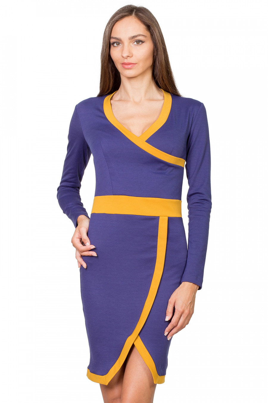 Платье с длинным рукавом, юбка-карандаш с запахом.