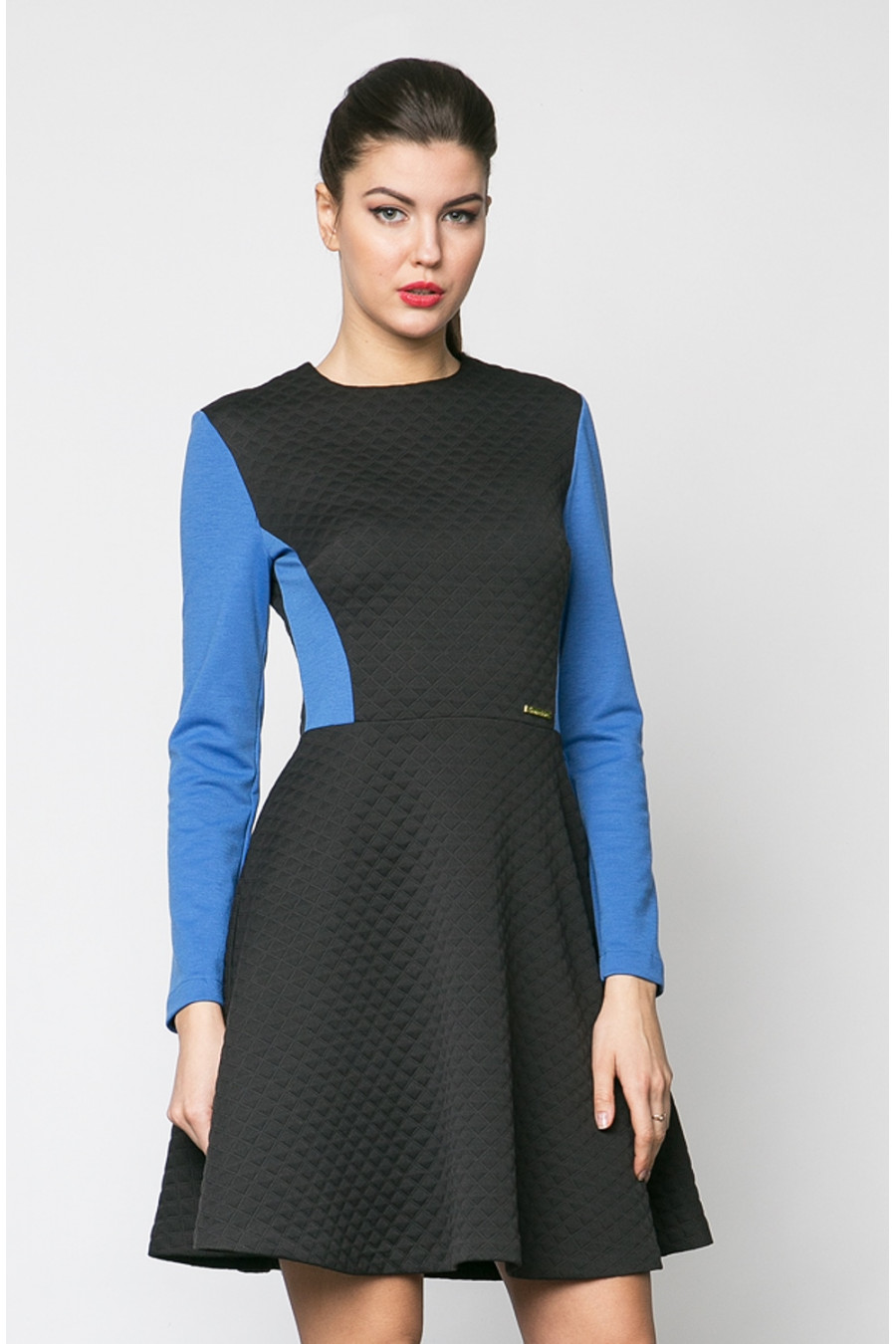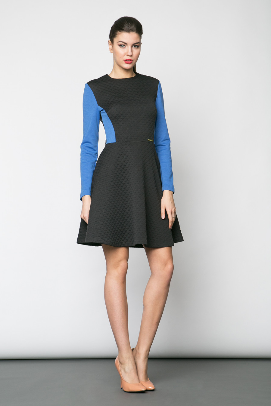 Платье с яркими длинными рукавами, юбкой -колоколом.