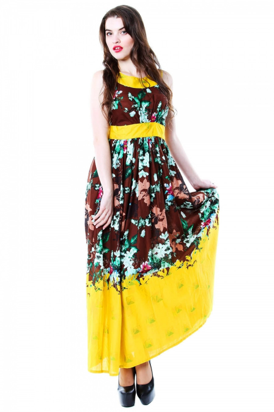 Яркое длинное платье. Модель оформлена красочным печатным рисунком. Идеальный летний вариант для создания жизнерадостных образов.Длина платья  138см.