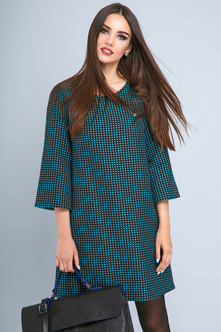 Платье-трапеция с рукавом 3/4 подойдет для офиса и для осенних прогулок.